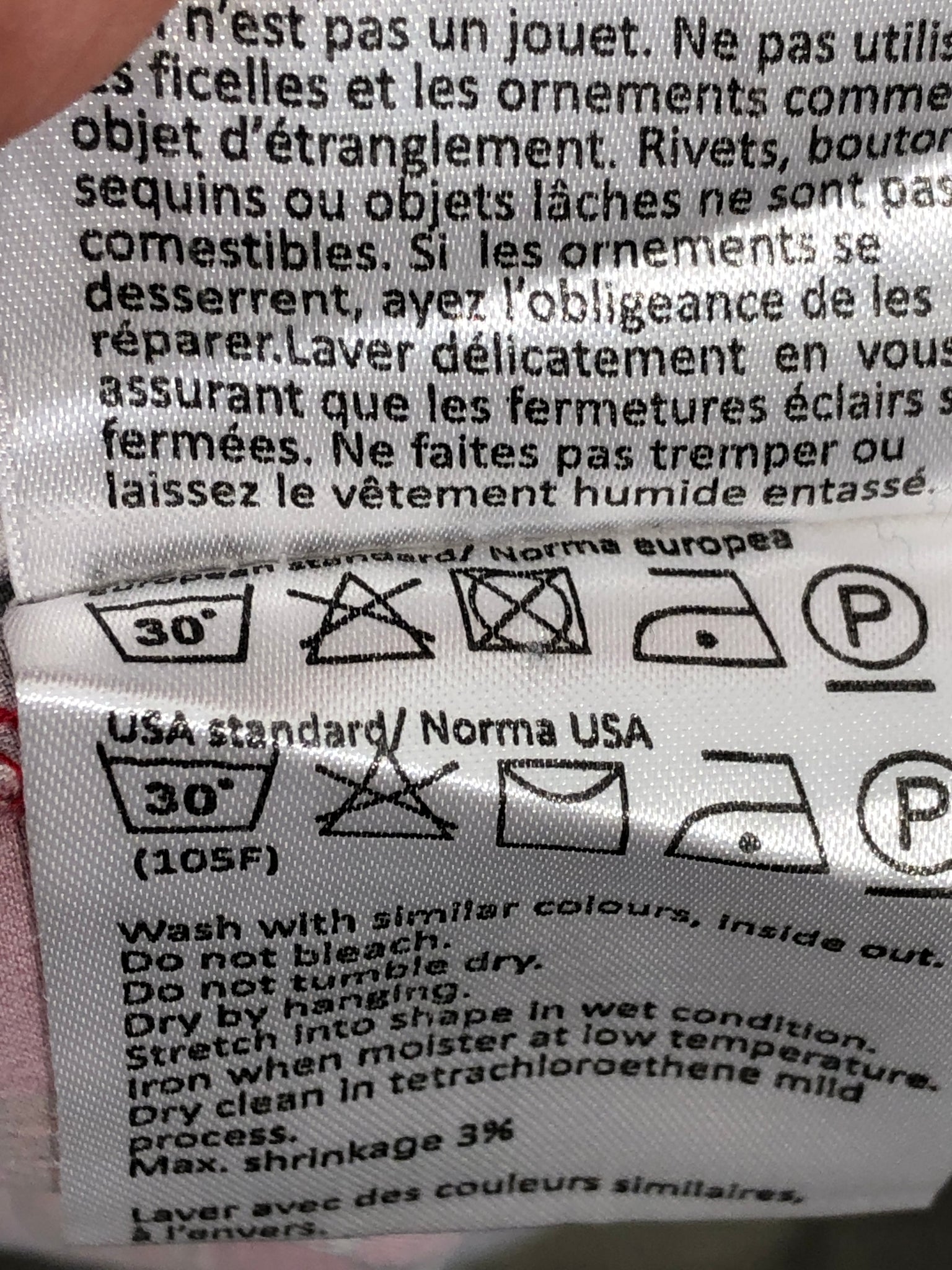 Da vi sælger brugt tøj, der er blevet vasket, kan vi ikke garantere, at størrelsesangivelsen ligger inden for en standardskala.