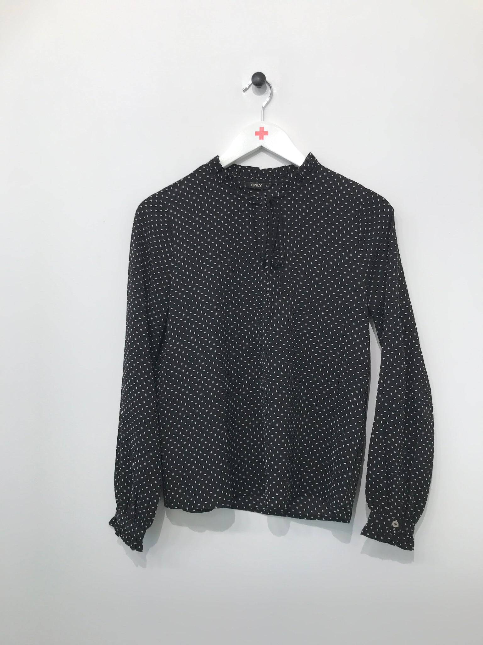 Smuk langærmet Only skjorte med bindedetalje ved halsen og flæsedetalje ved ærme og hals.