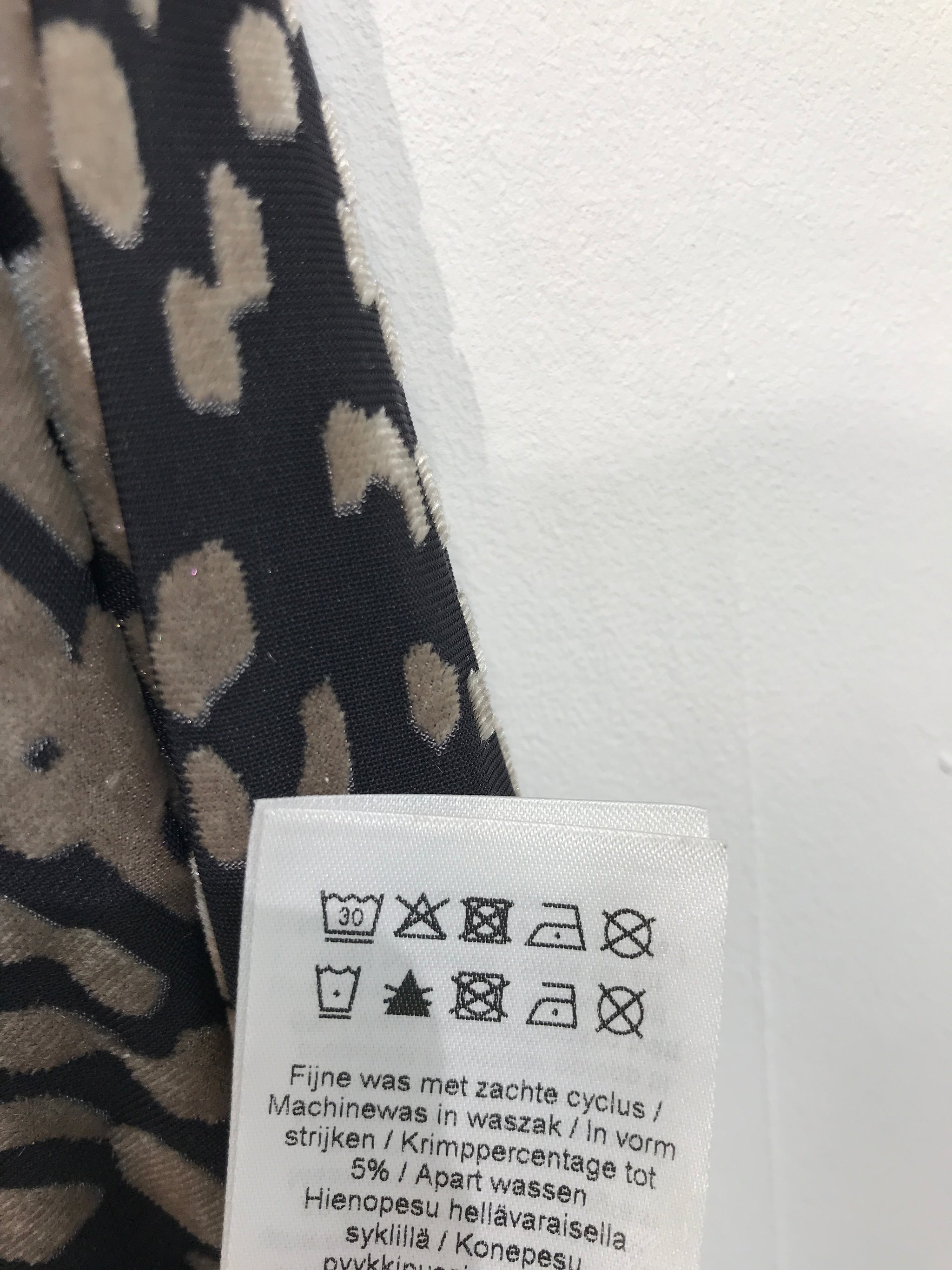 Da vi sælger brugt tøj, der er blevet vasket, kan vi ikke garantere, at størrelsesangivelsen ligger inden for en standardskala.