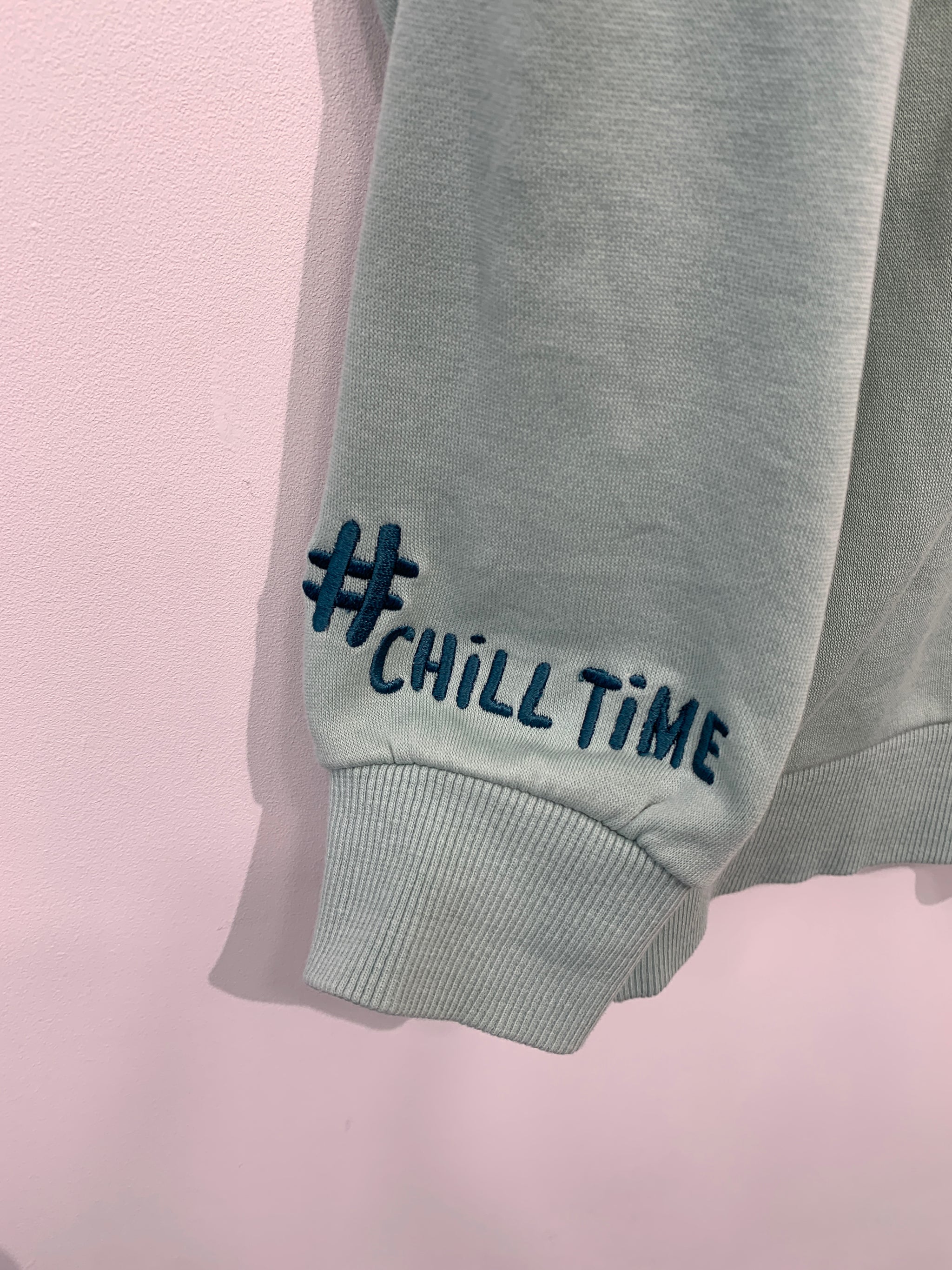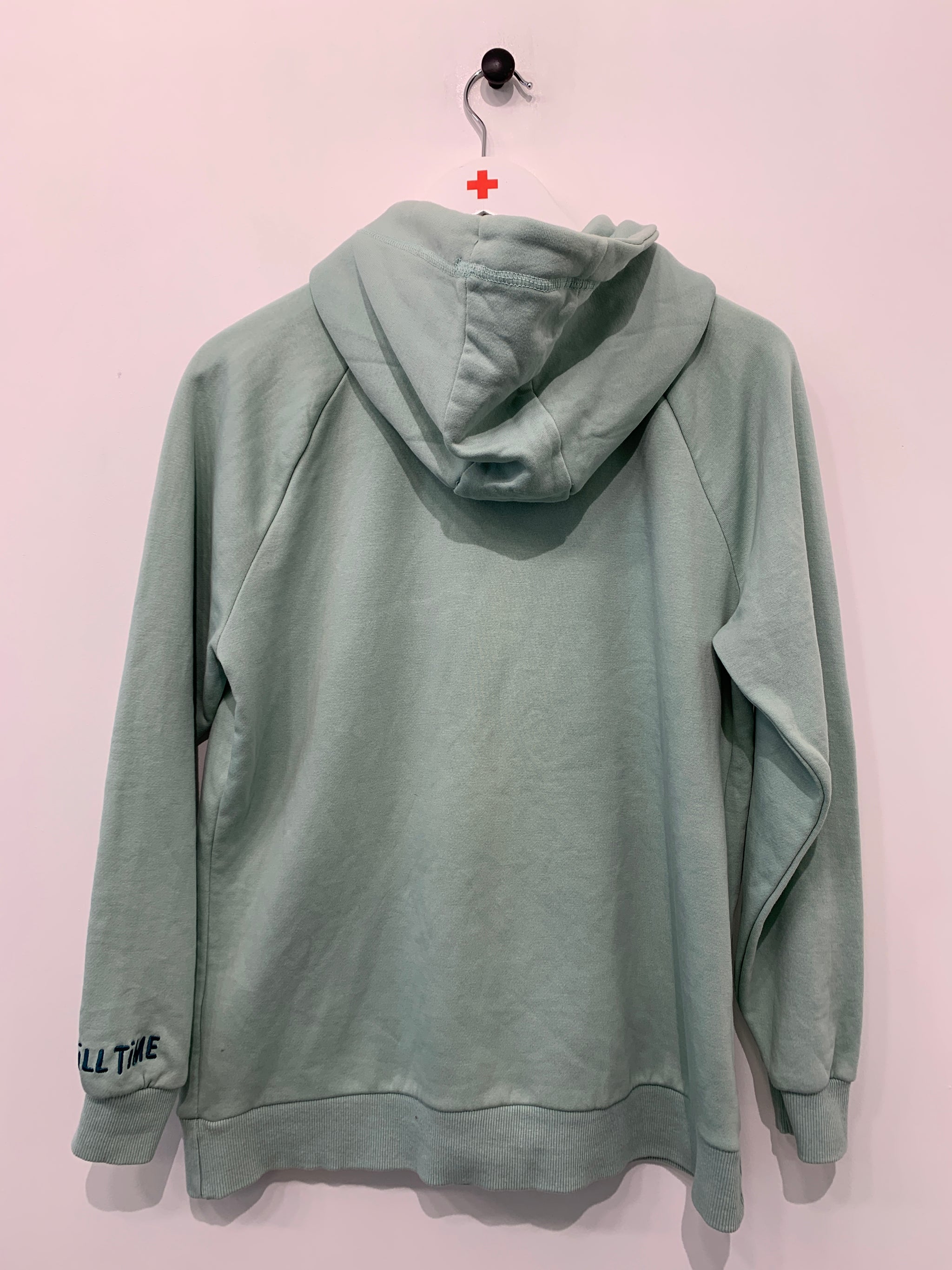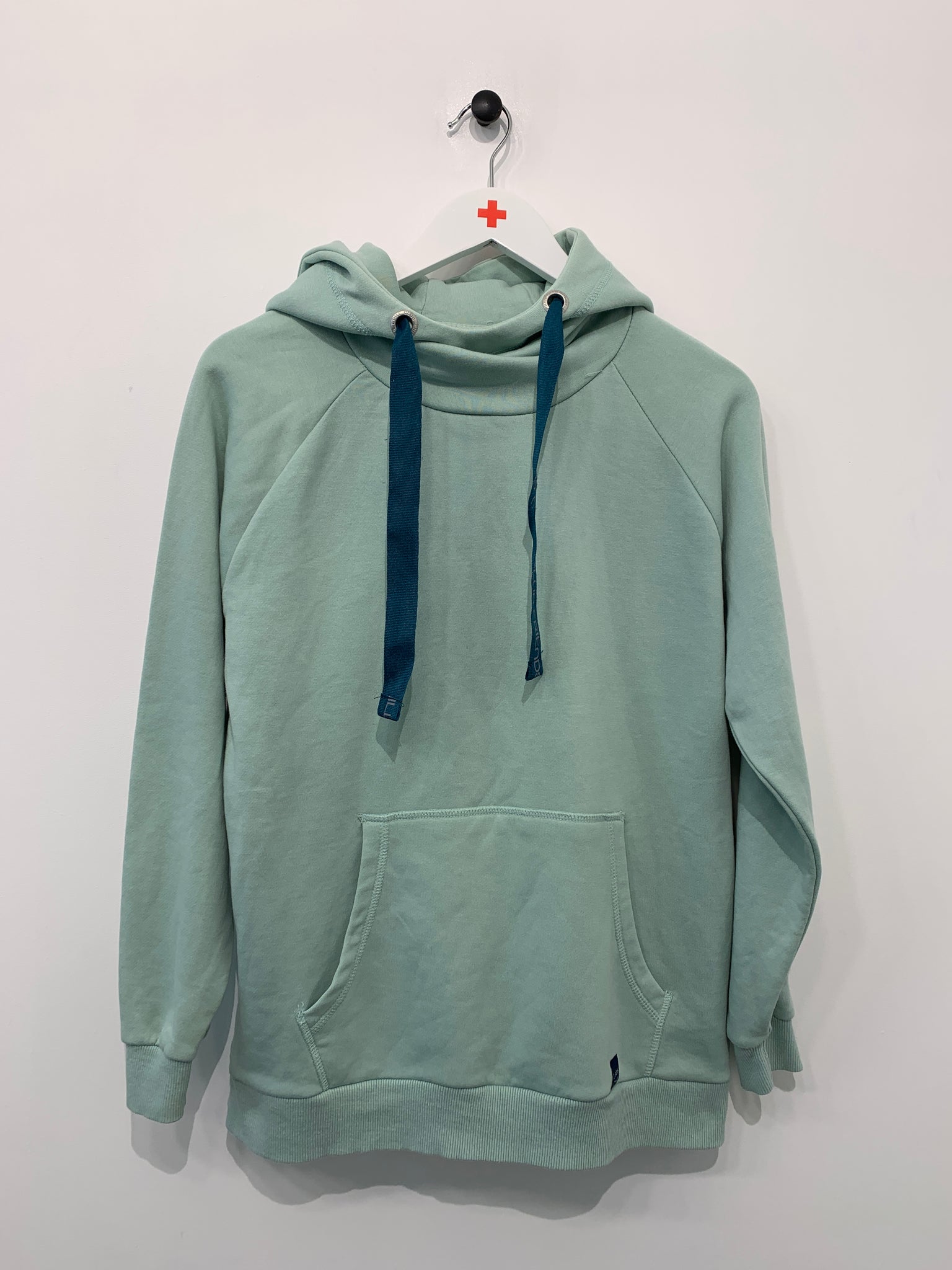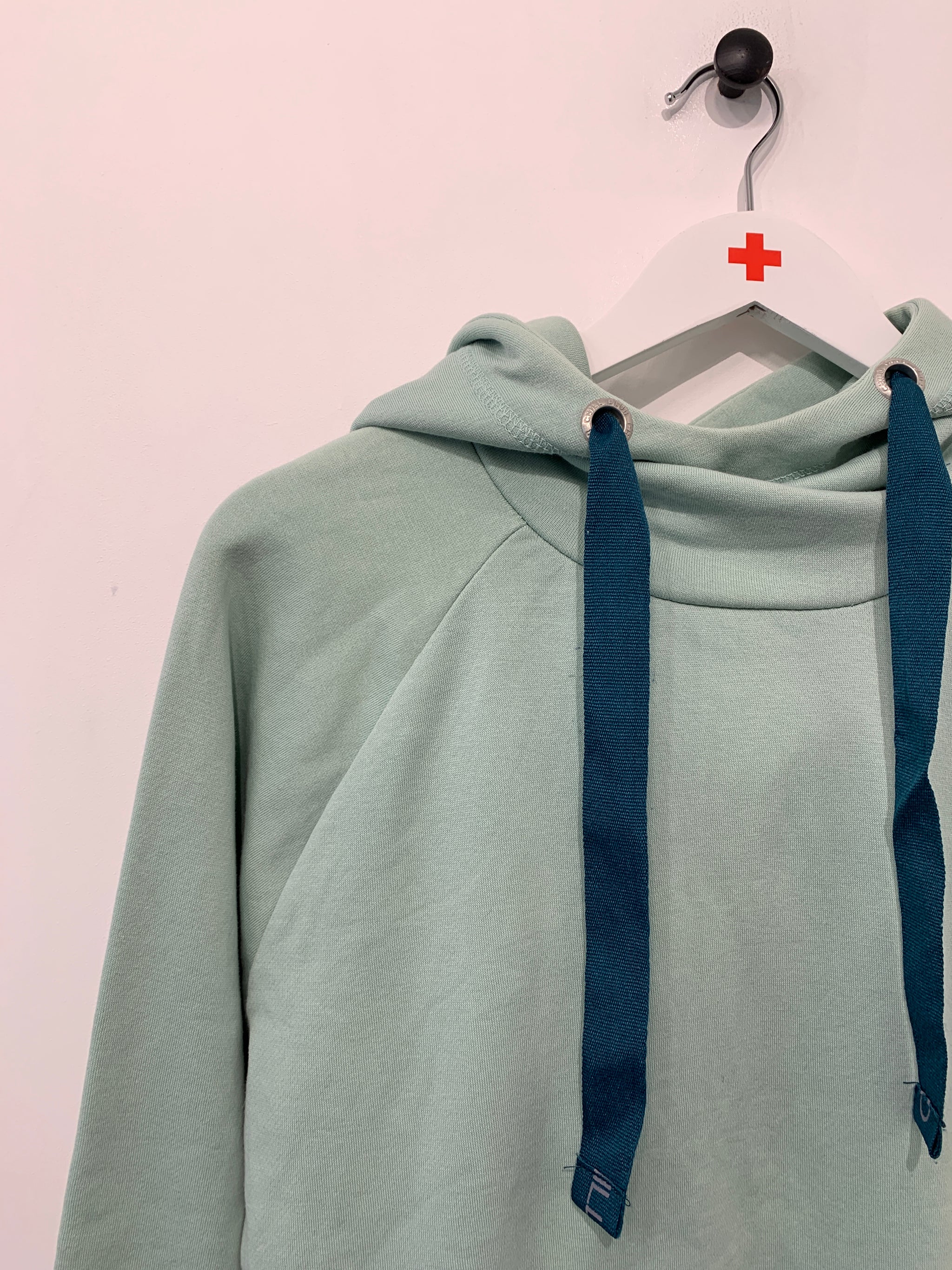 Lang ærmet hætte trøje med lommer foran i str. 44/46.