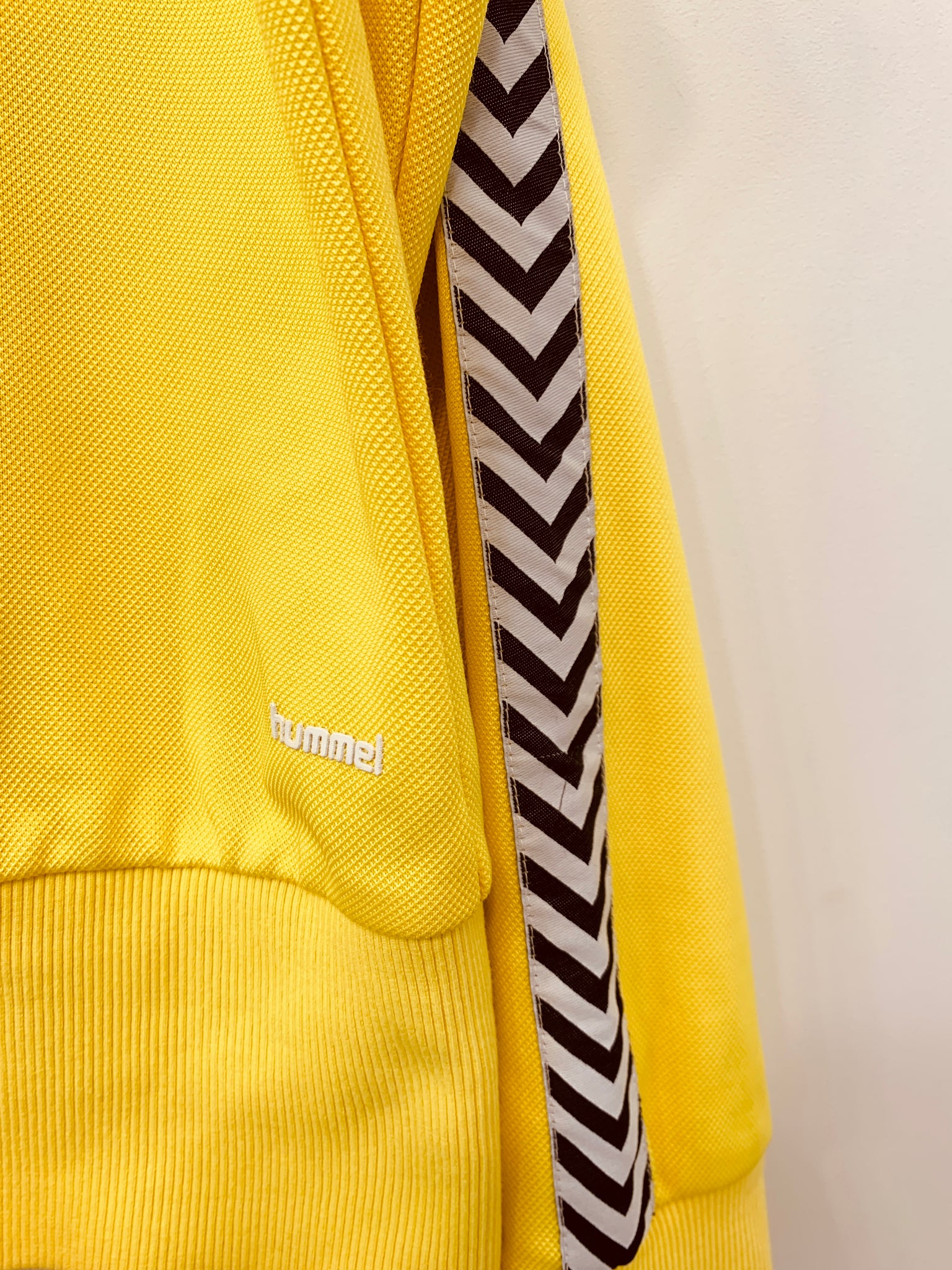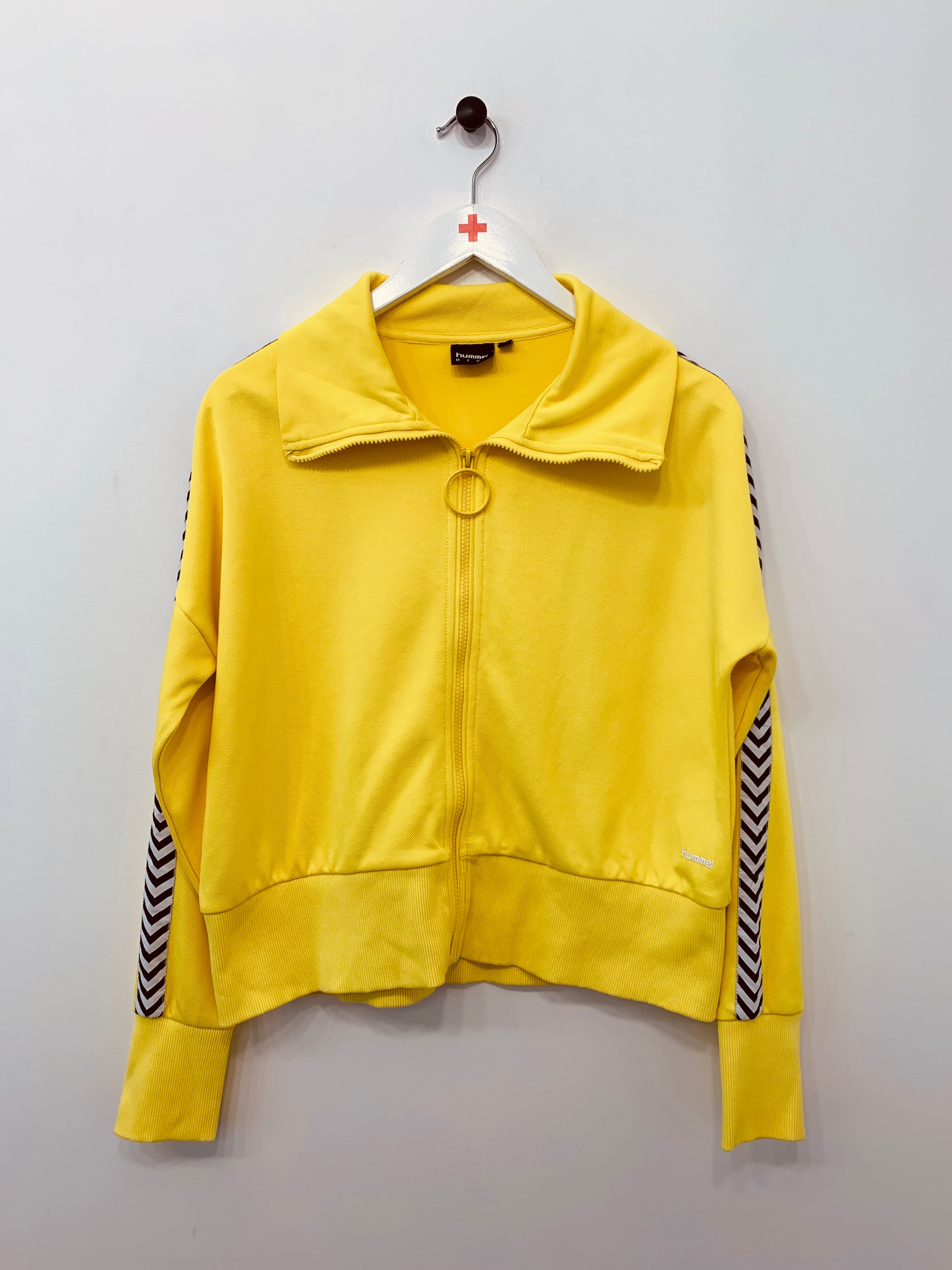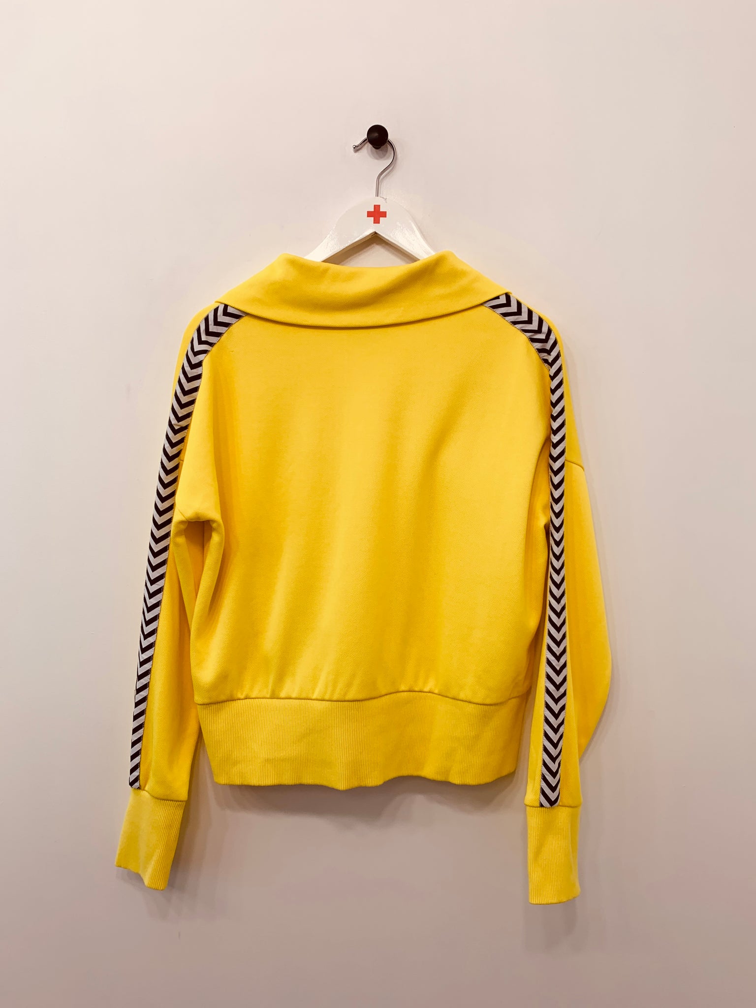 Flot gul sweater med lange ærmer og lynlås op af midten.
