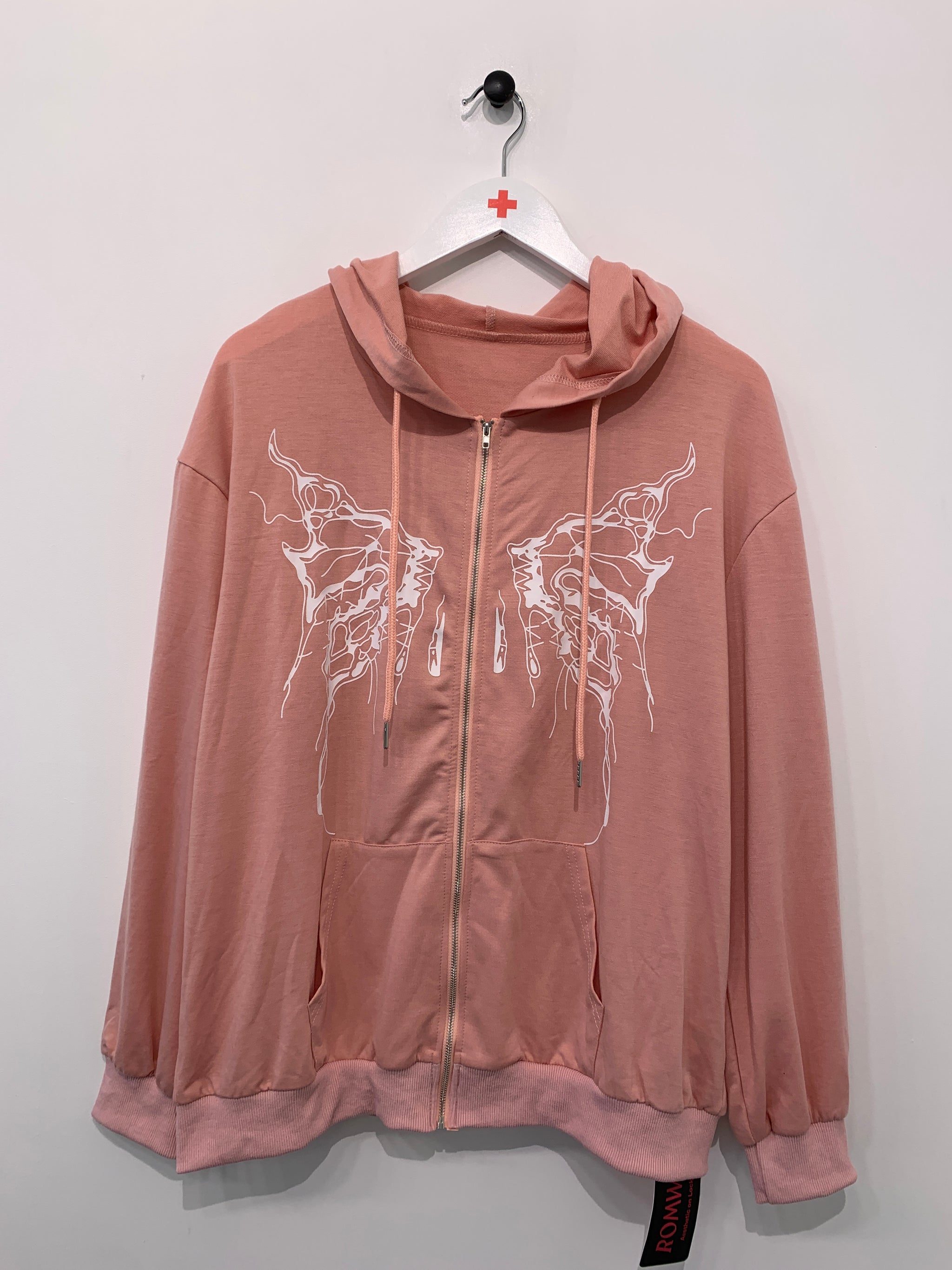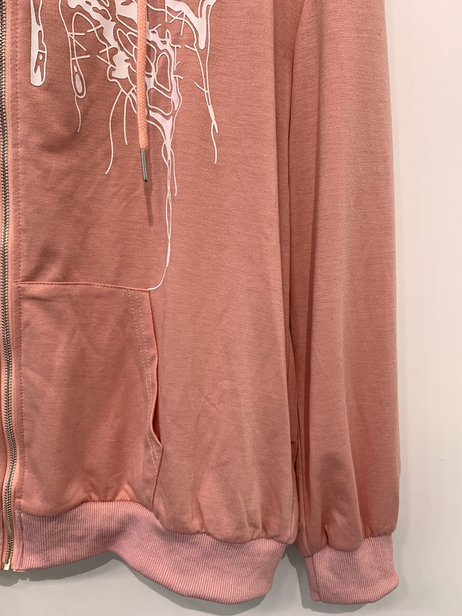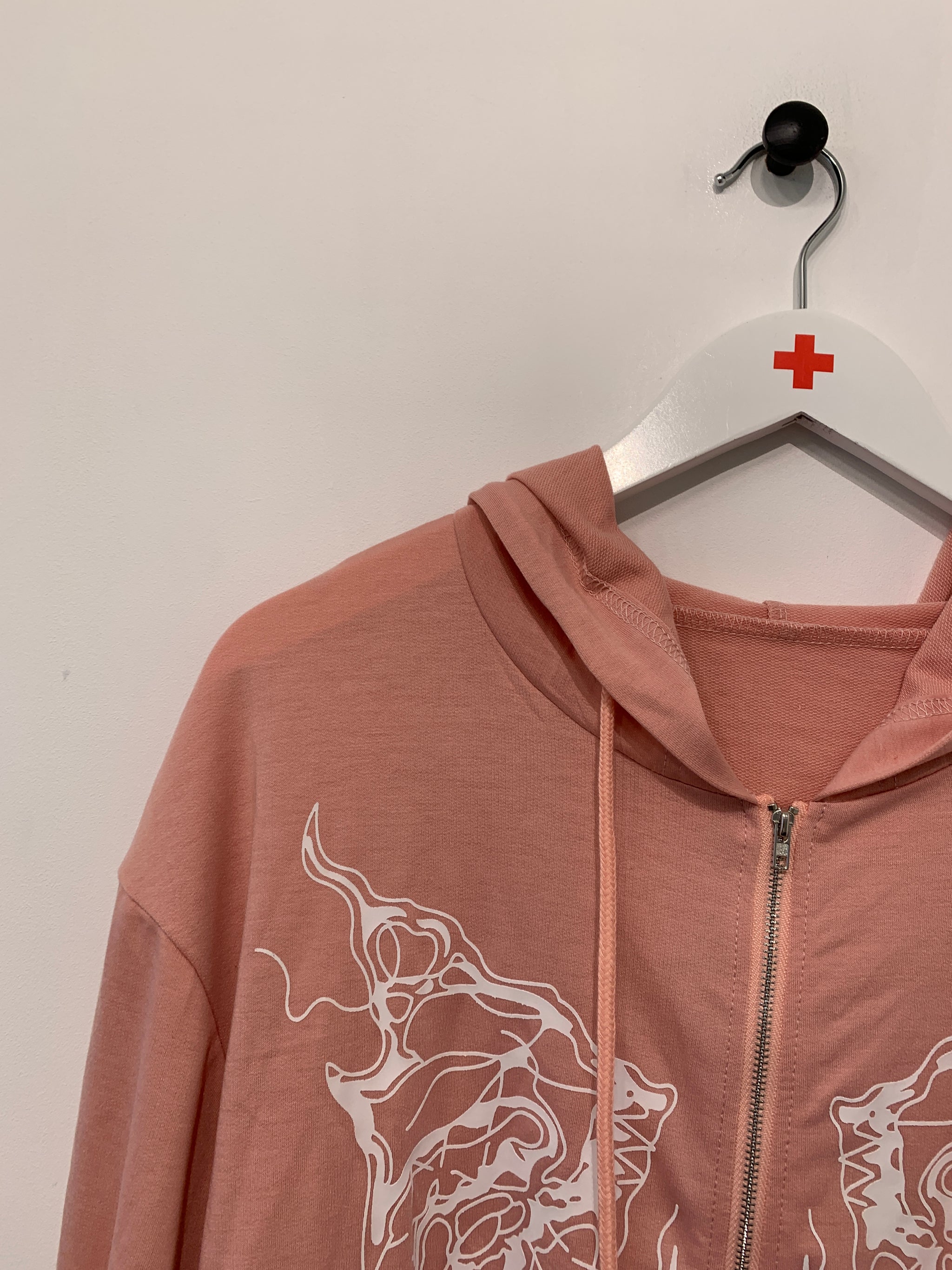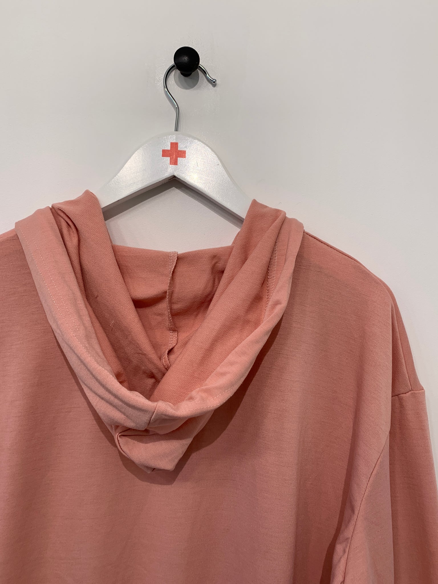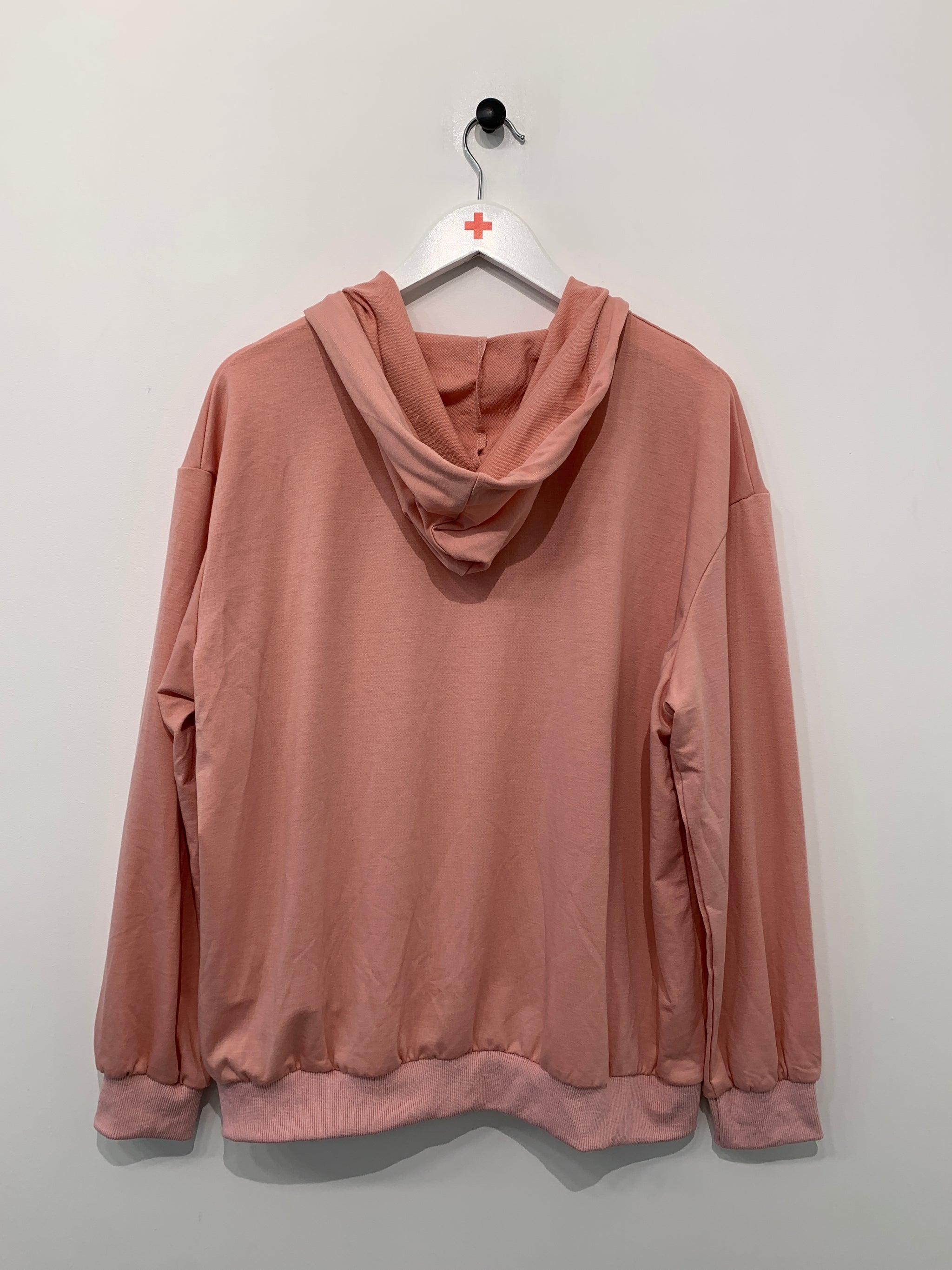 Lang ærmet hætte bluse med tryk foran & med ensfarvet ryg.