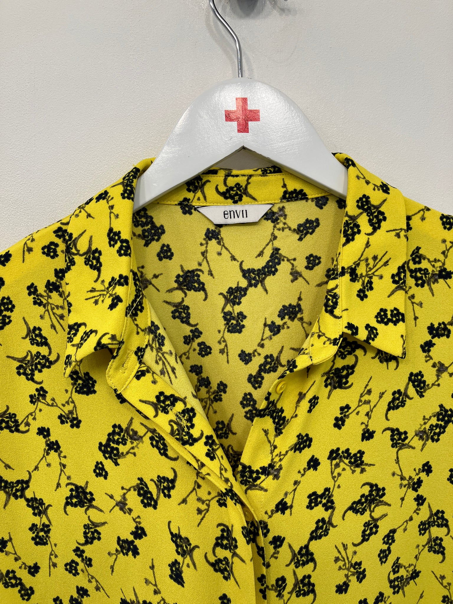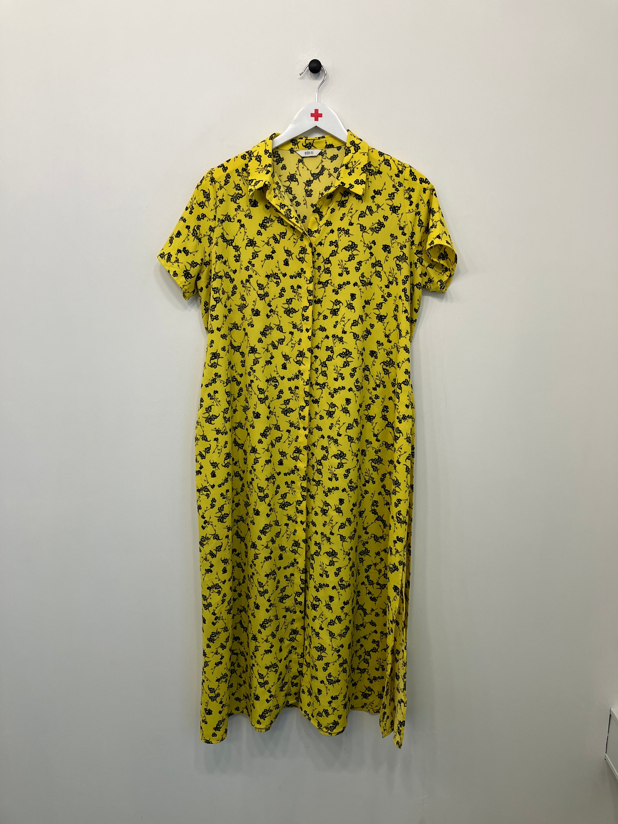 Flot kjole med knaplukning på front og bindebånd i taljen.