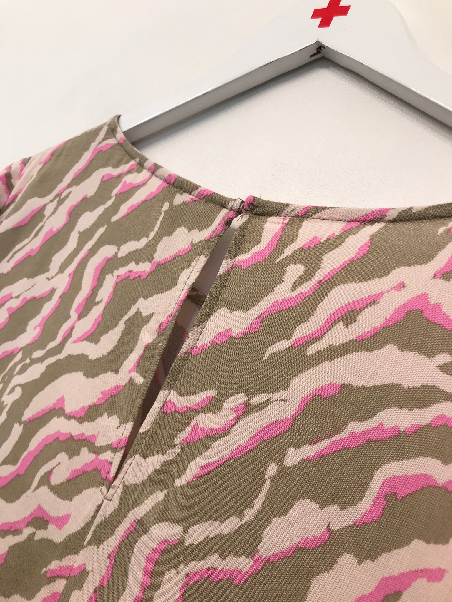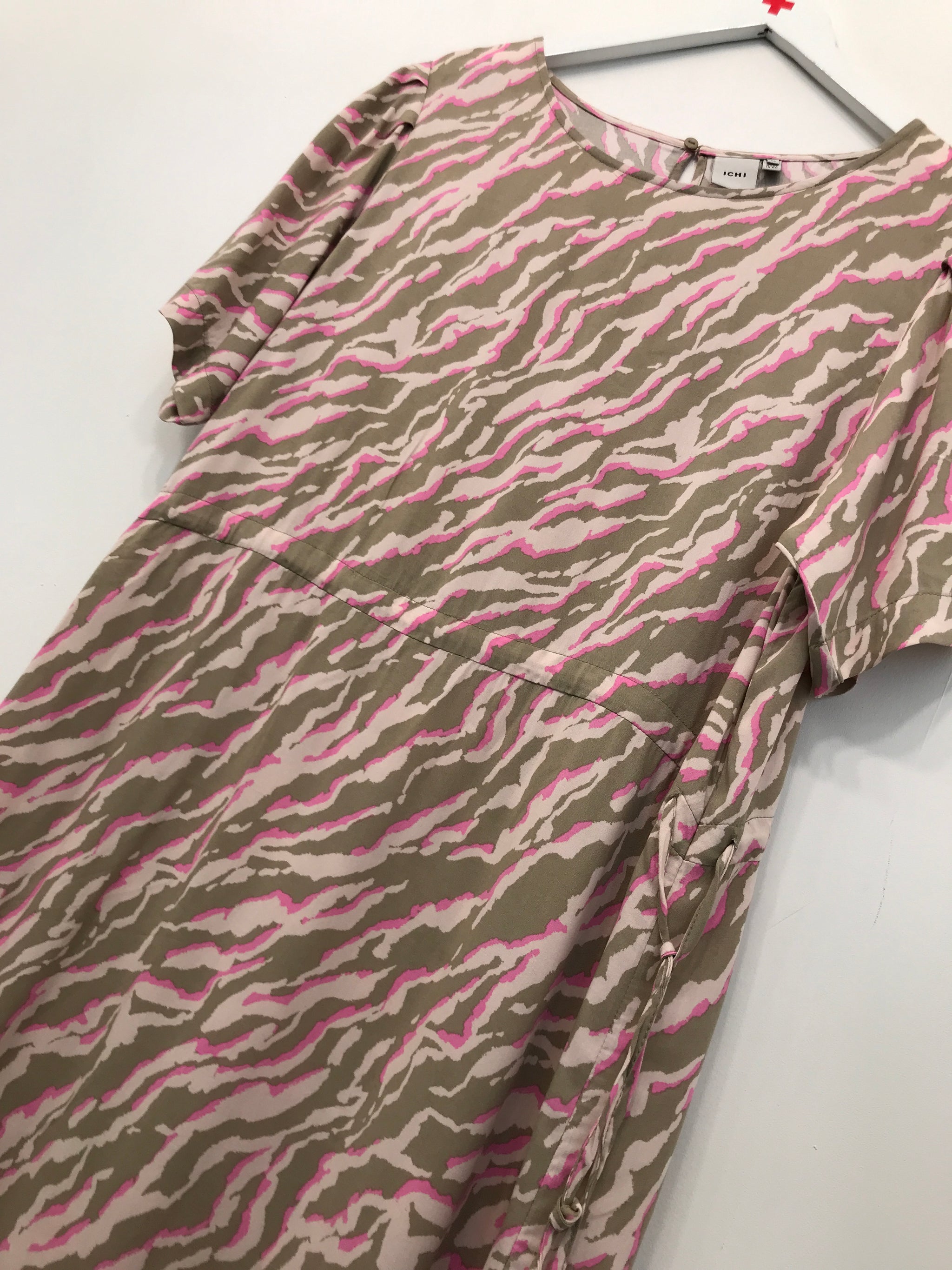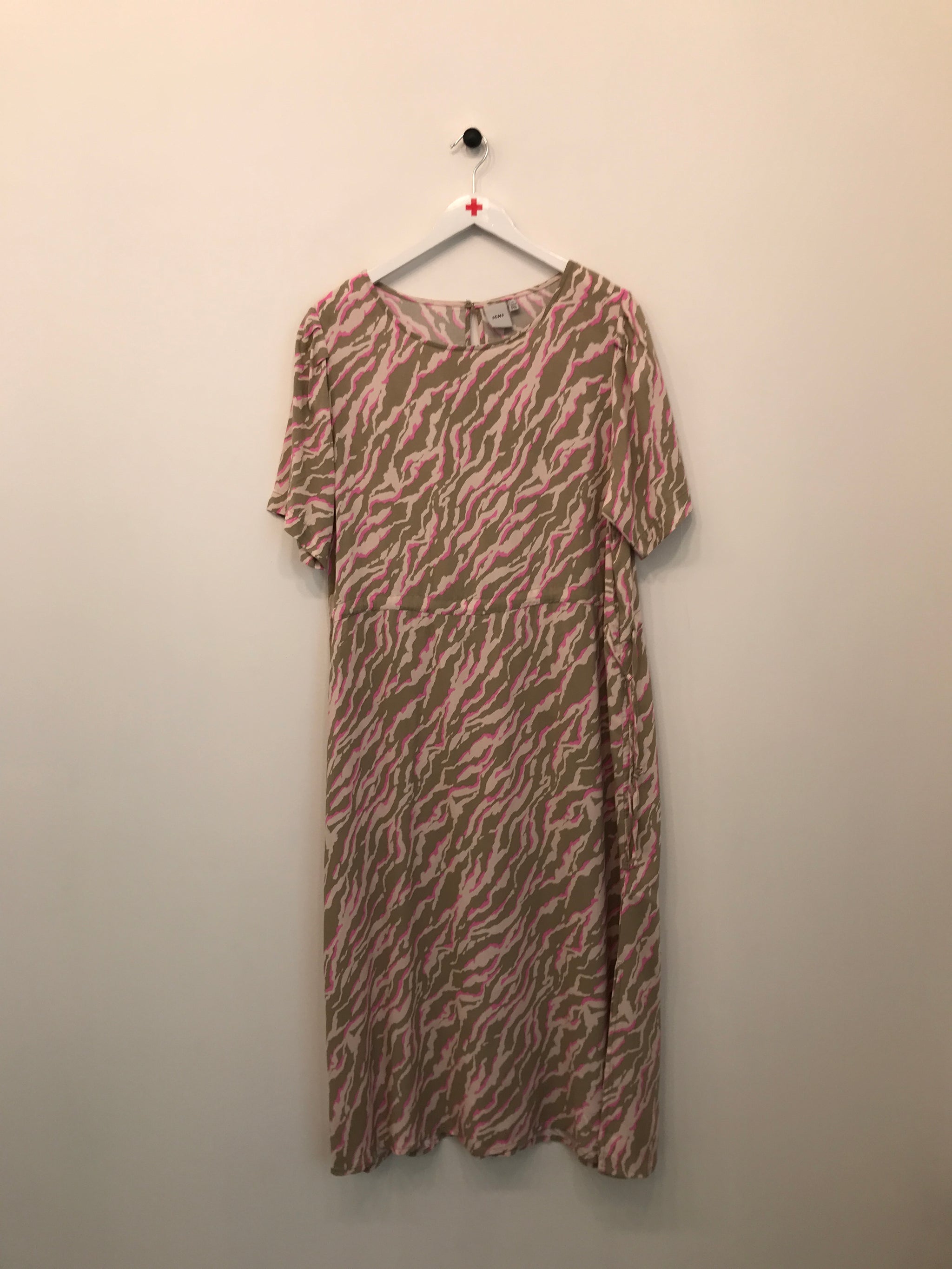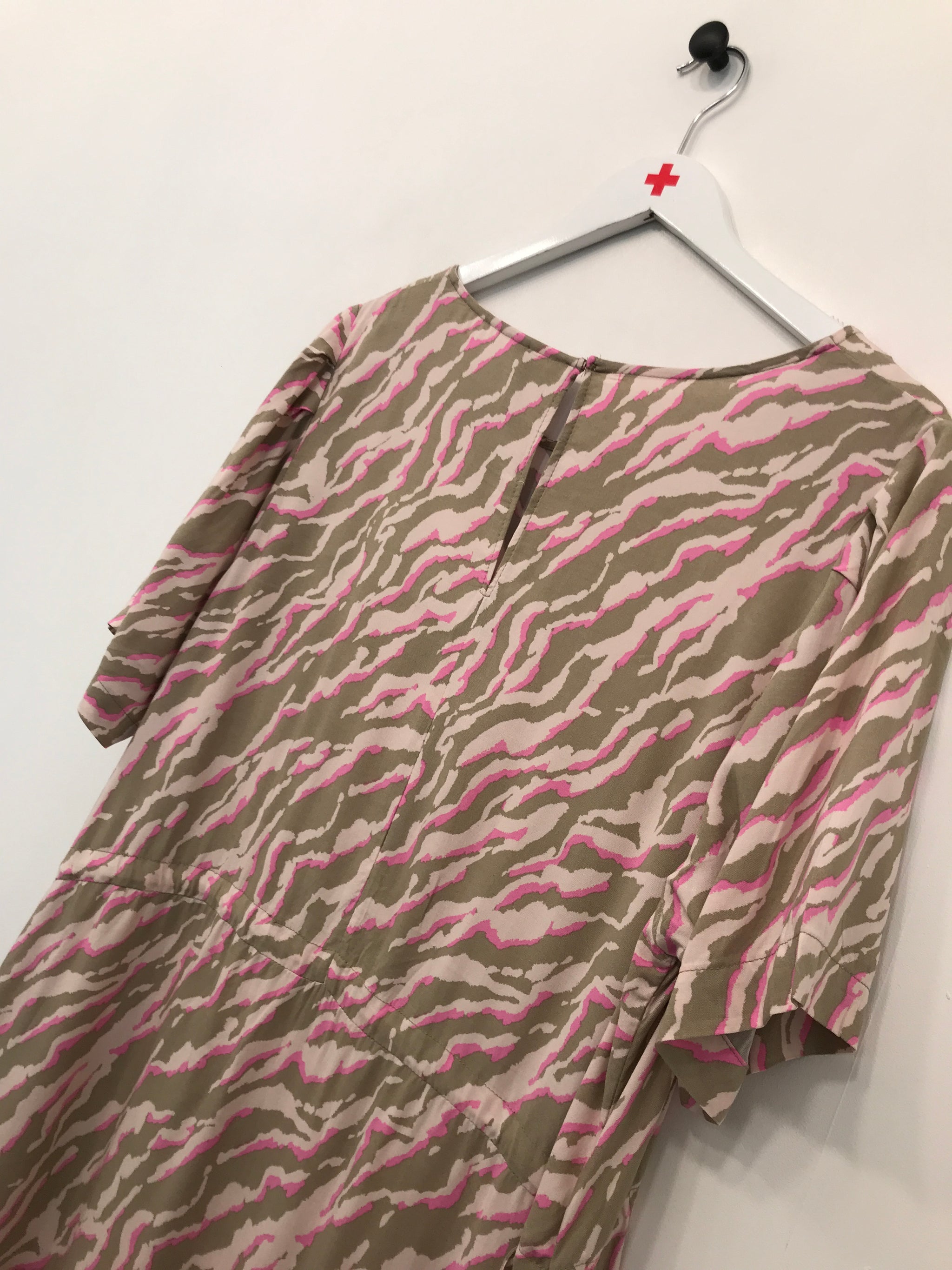 En enkel, flot kjole med korte ærmer og rund halsudskæring.