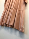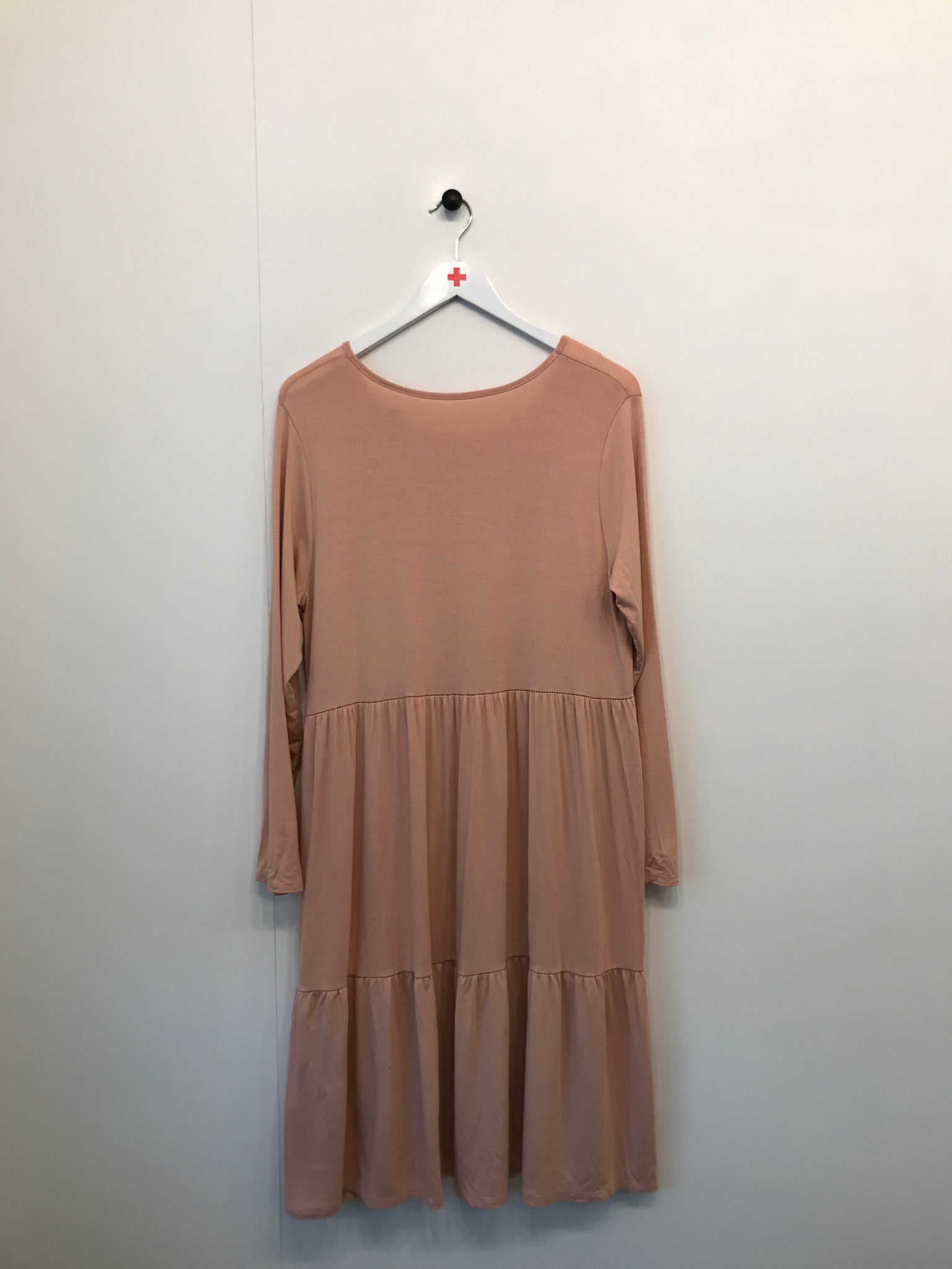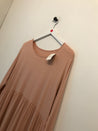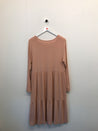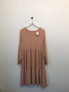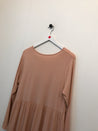 Kjole med flæse, lange ærmer og rund hals.