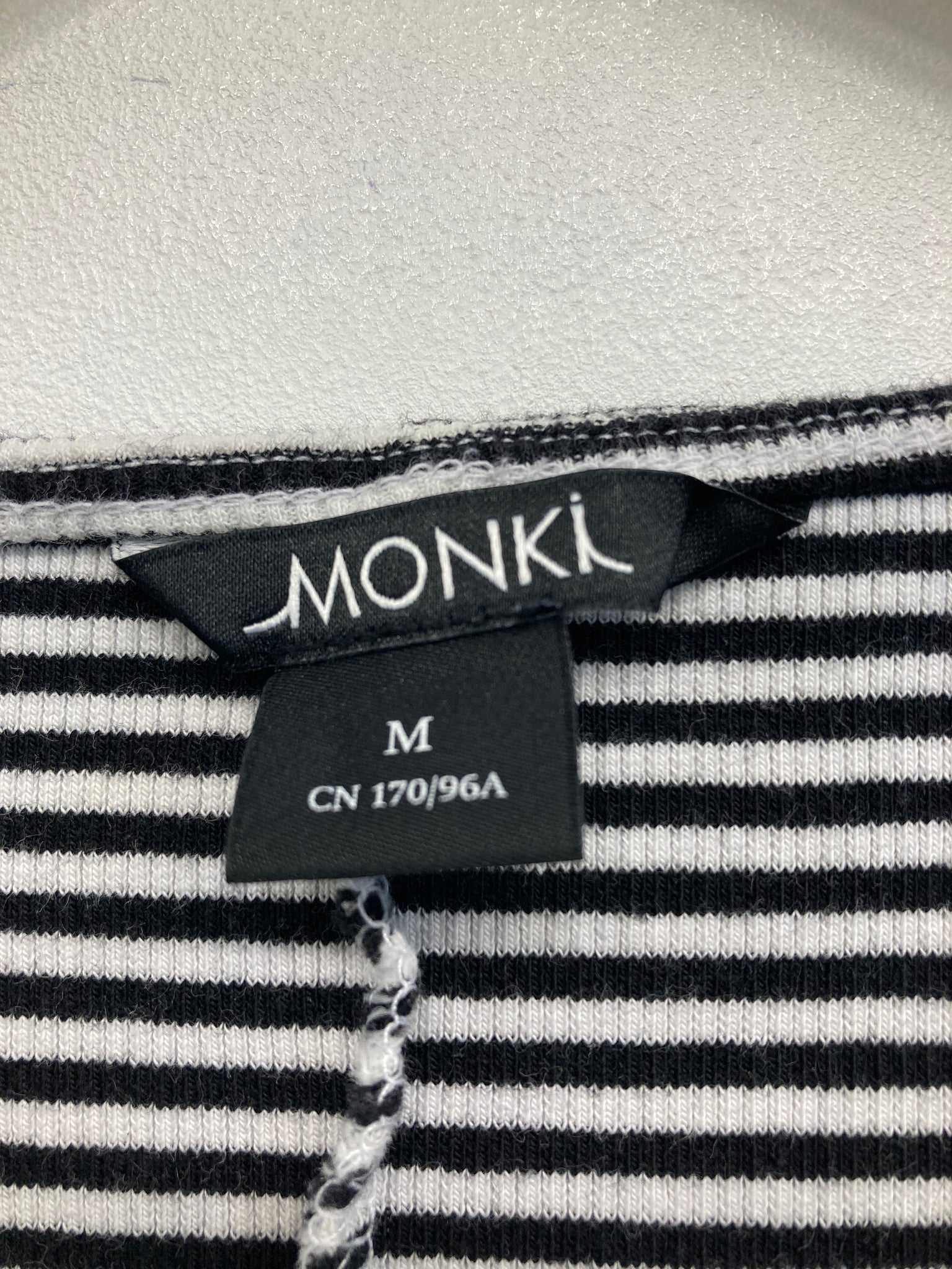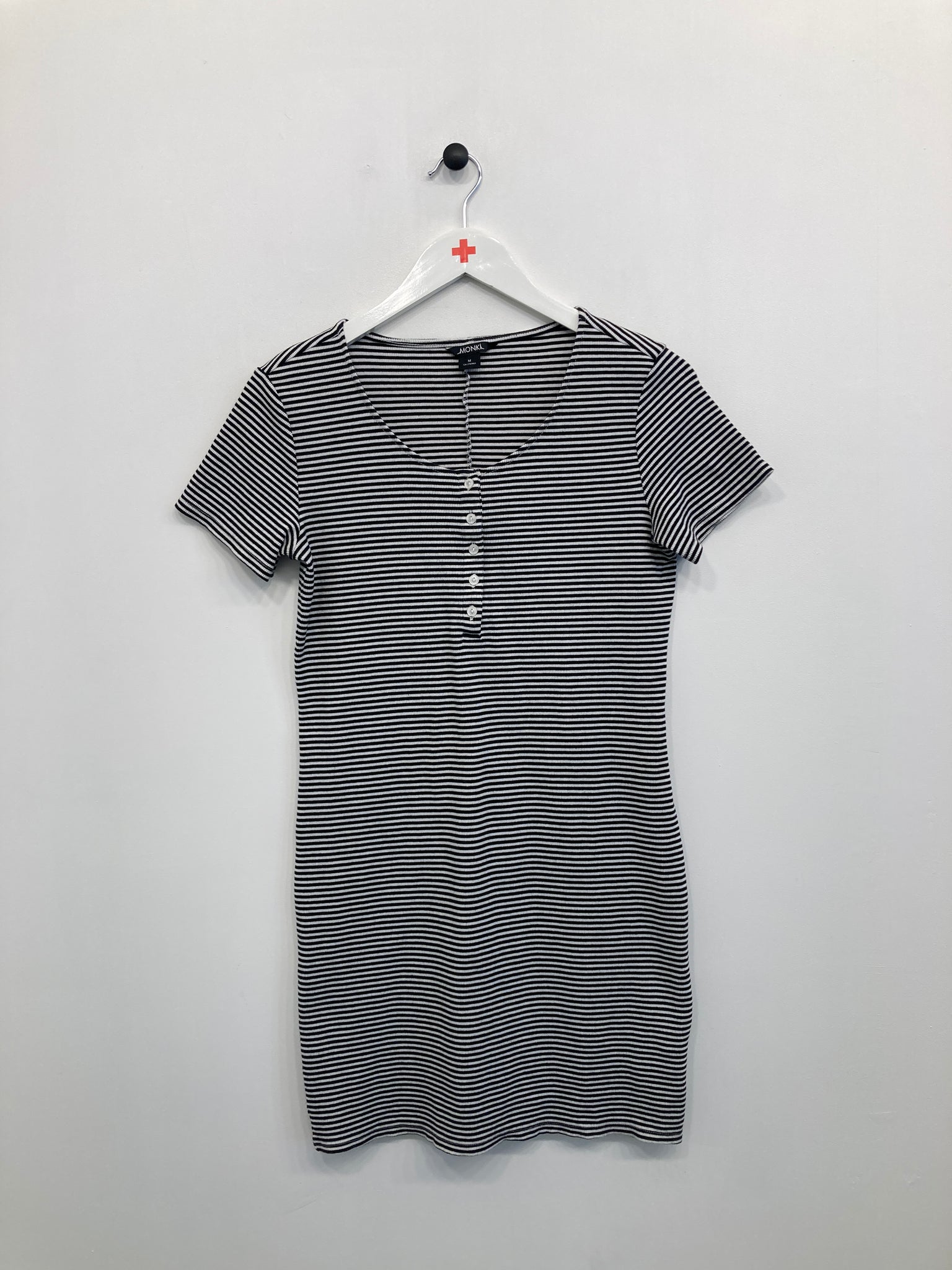 Sød kjole fra mærket Monki med tætte striber og knapper foran på brystet.