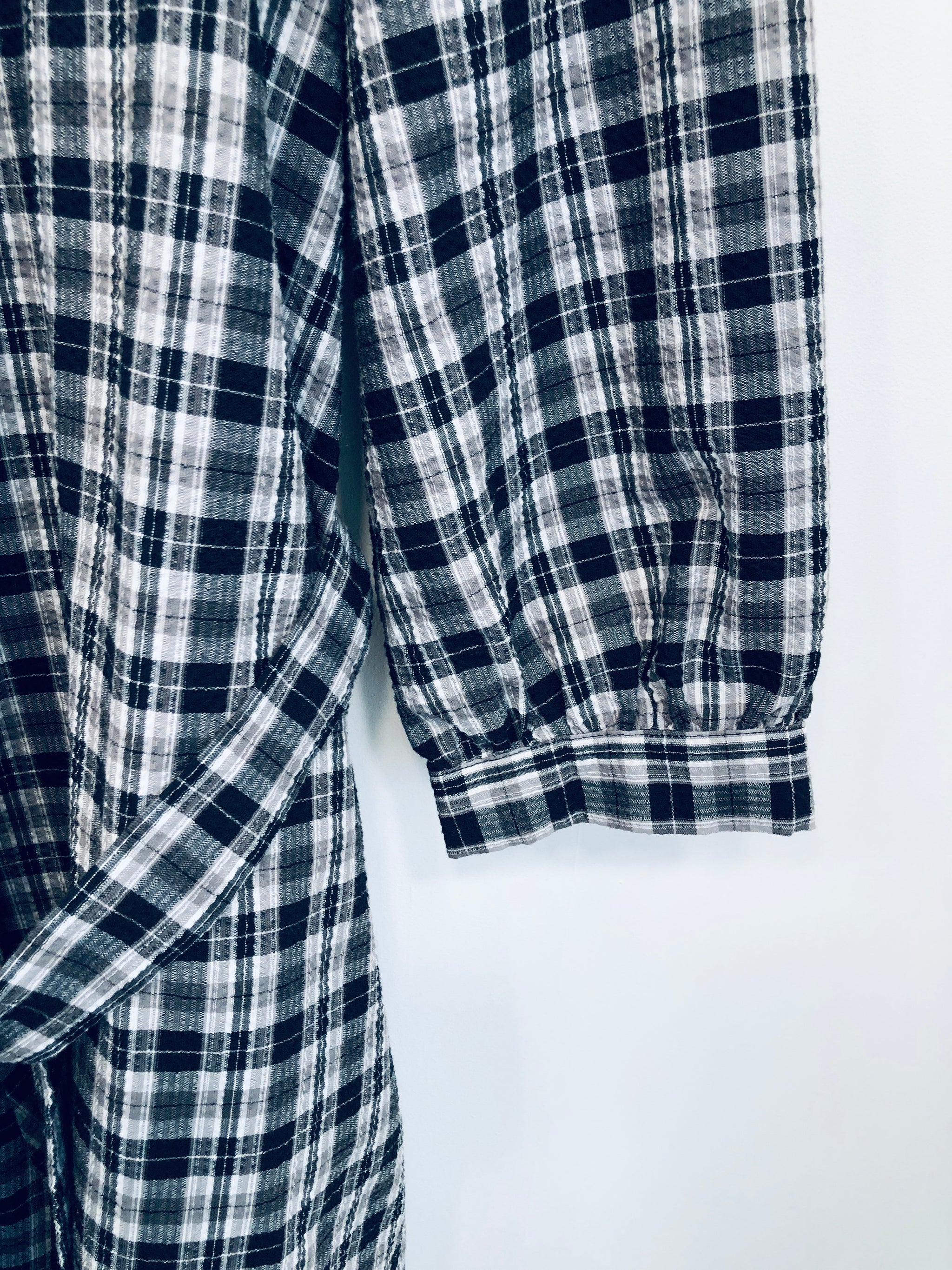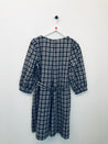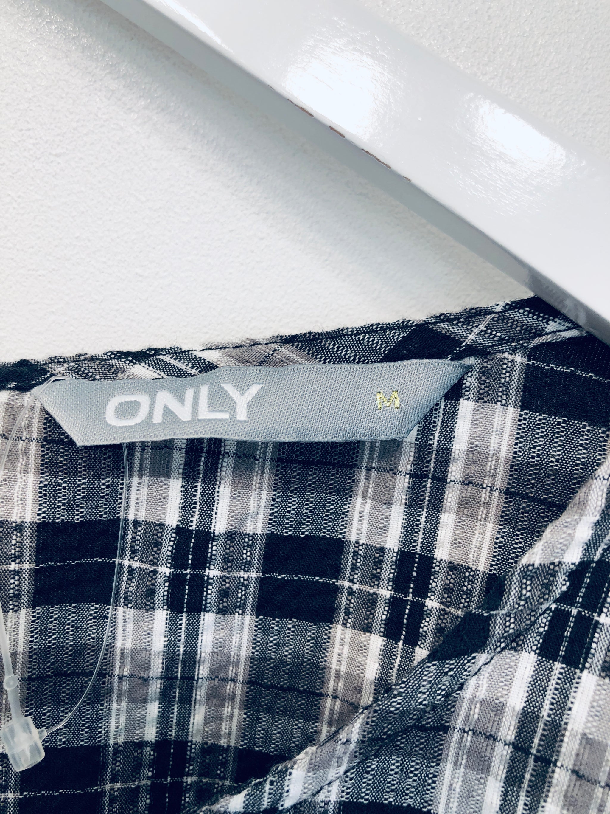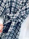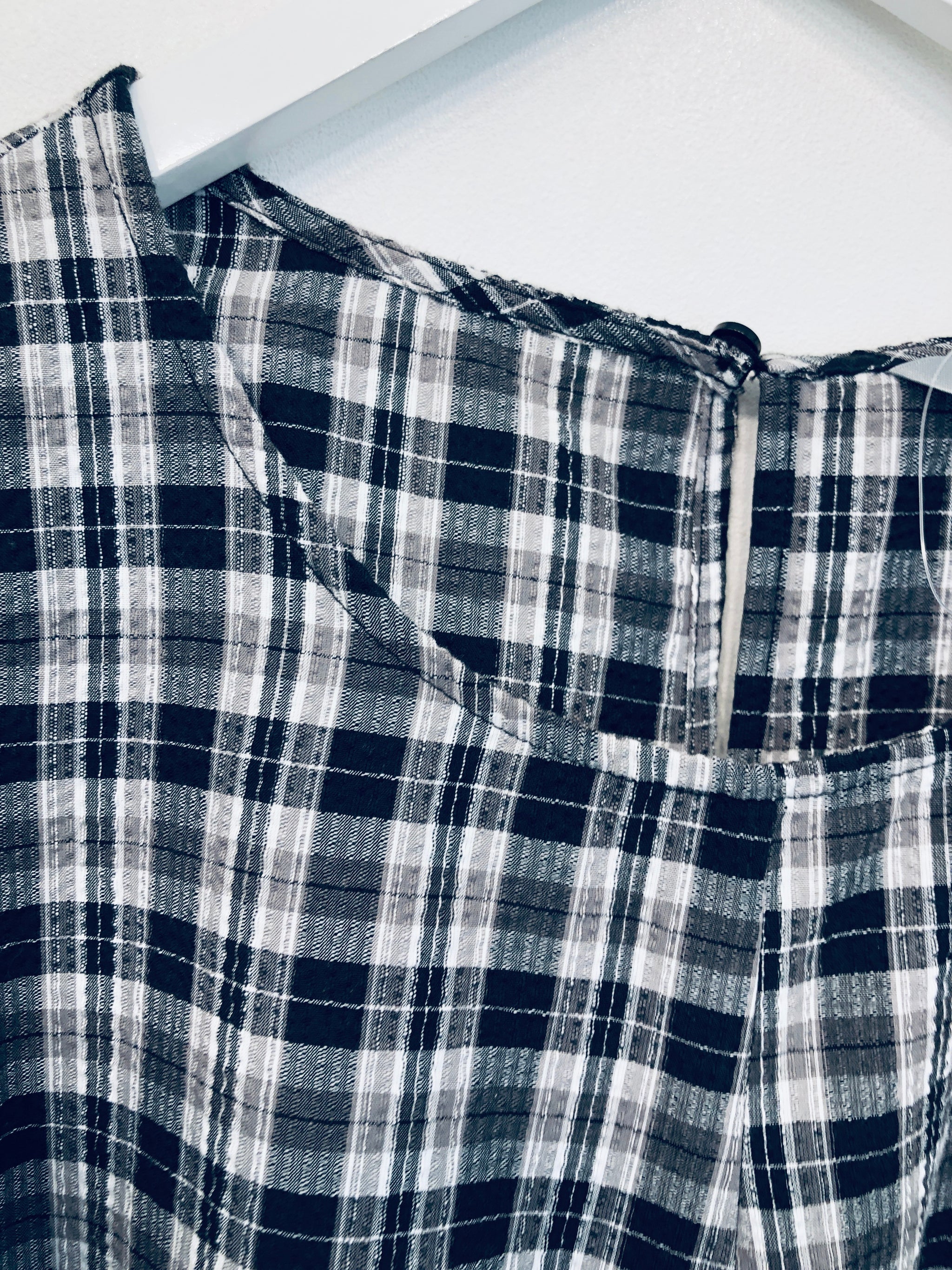 Flot hvid og grå ternet kjole med en snor rundt om taljen.
