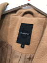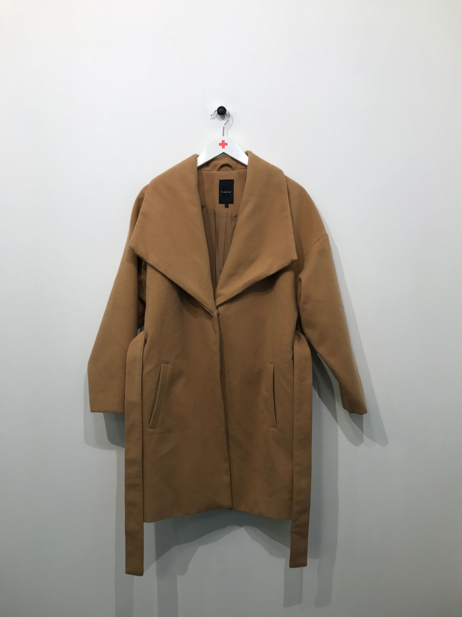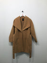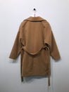 Smart frakke med stor krave, trykknaplukning og bredt bindebånd