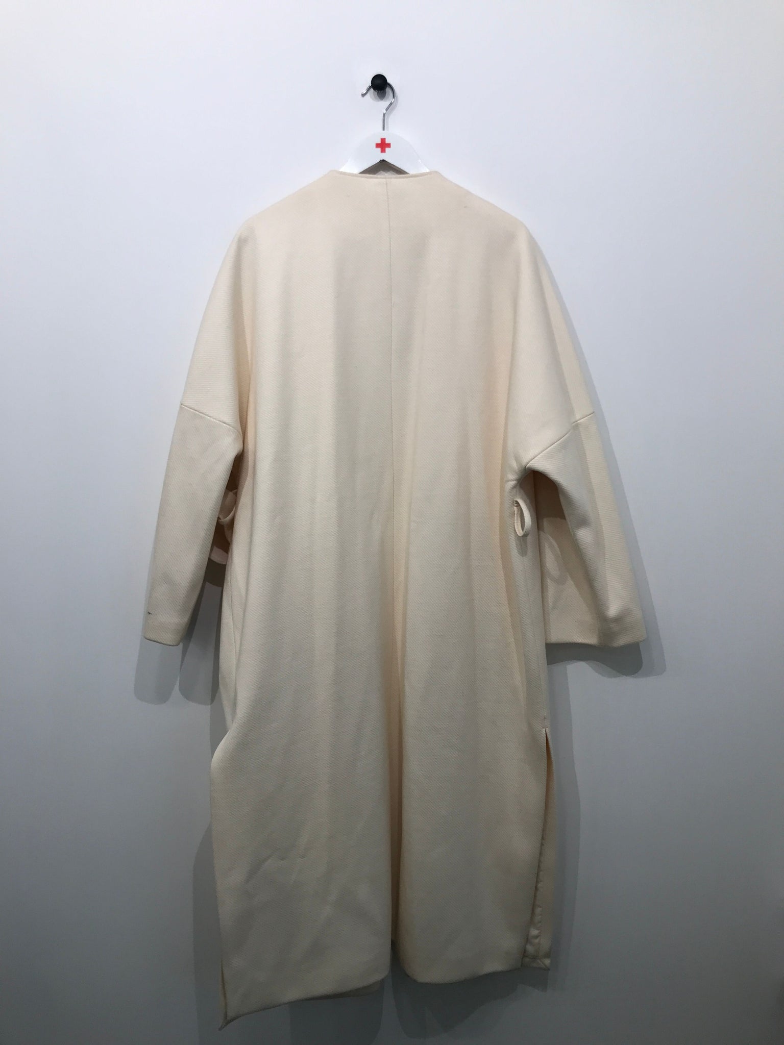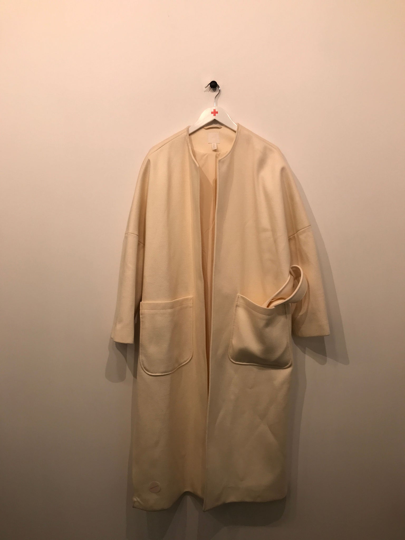 Smart rundhalset frakke med gode lommer og bredt bindebælte