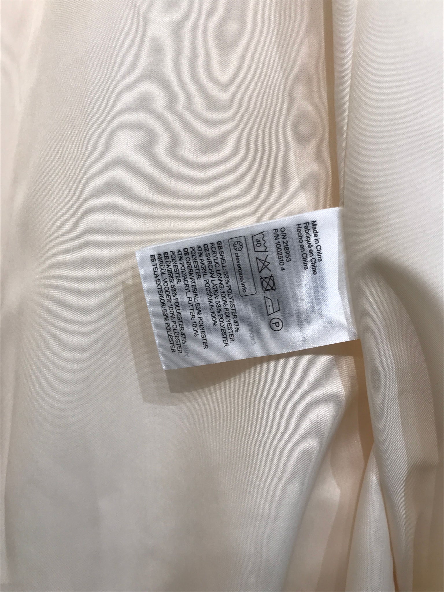 Da vi sælger brugt tøj, der er blevet vasket, kan vi ikke garantere, at størrelsesangivelsen ligger inden for en standardskala.