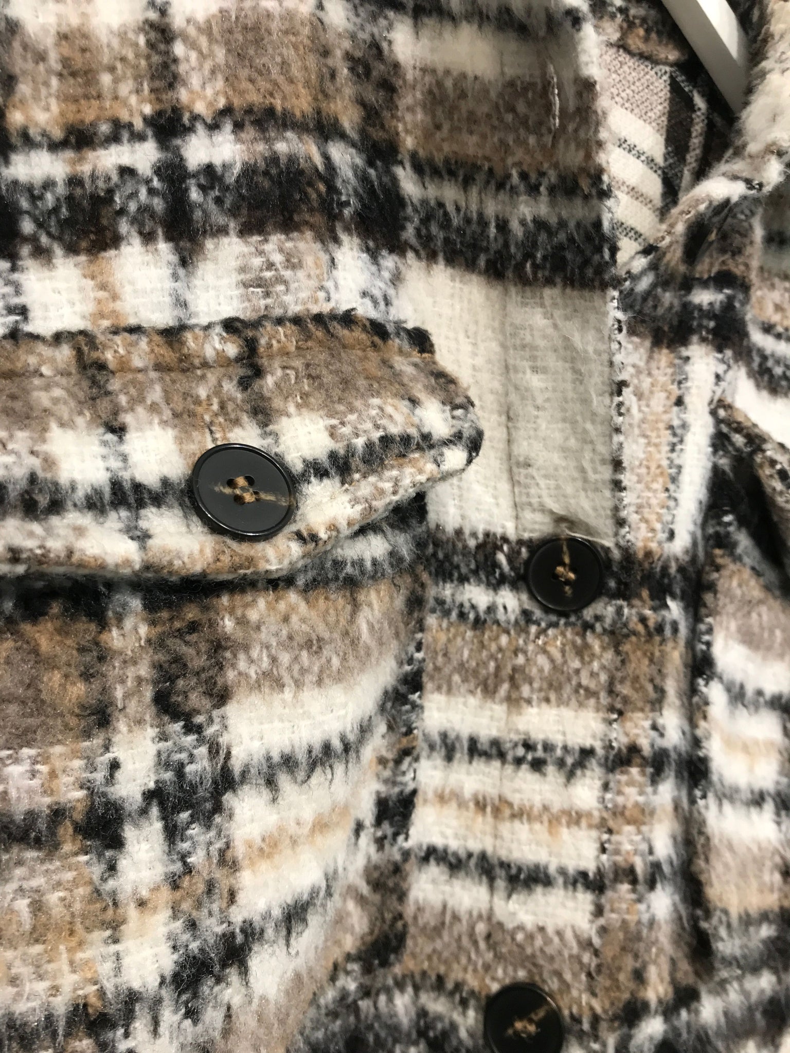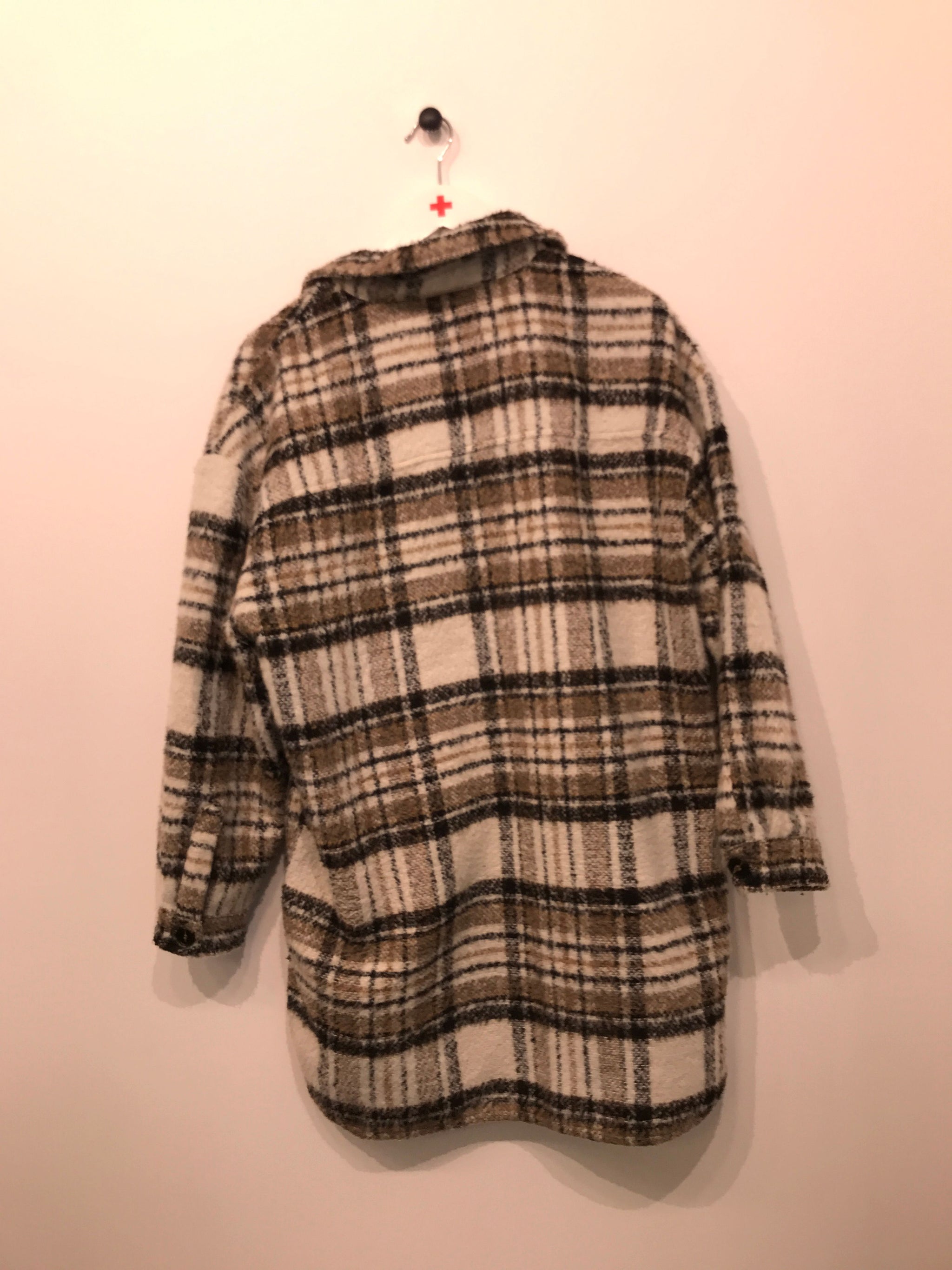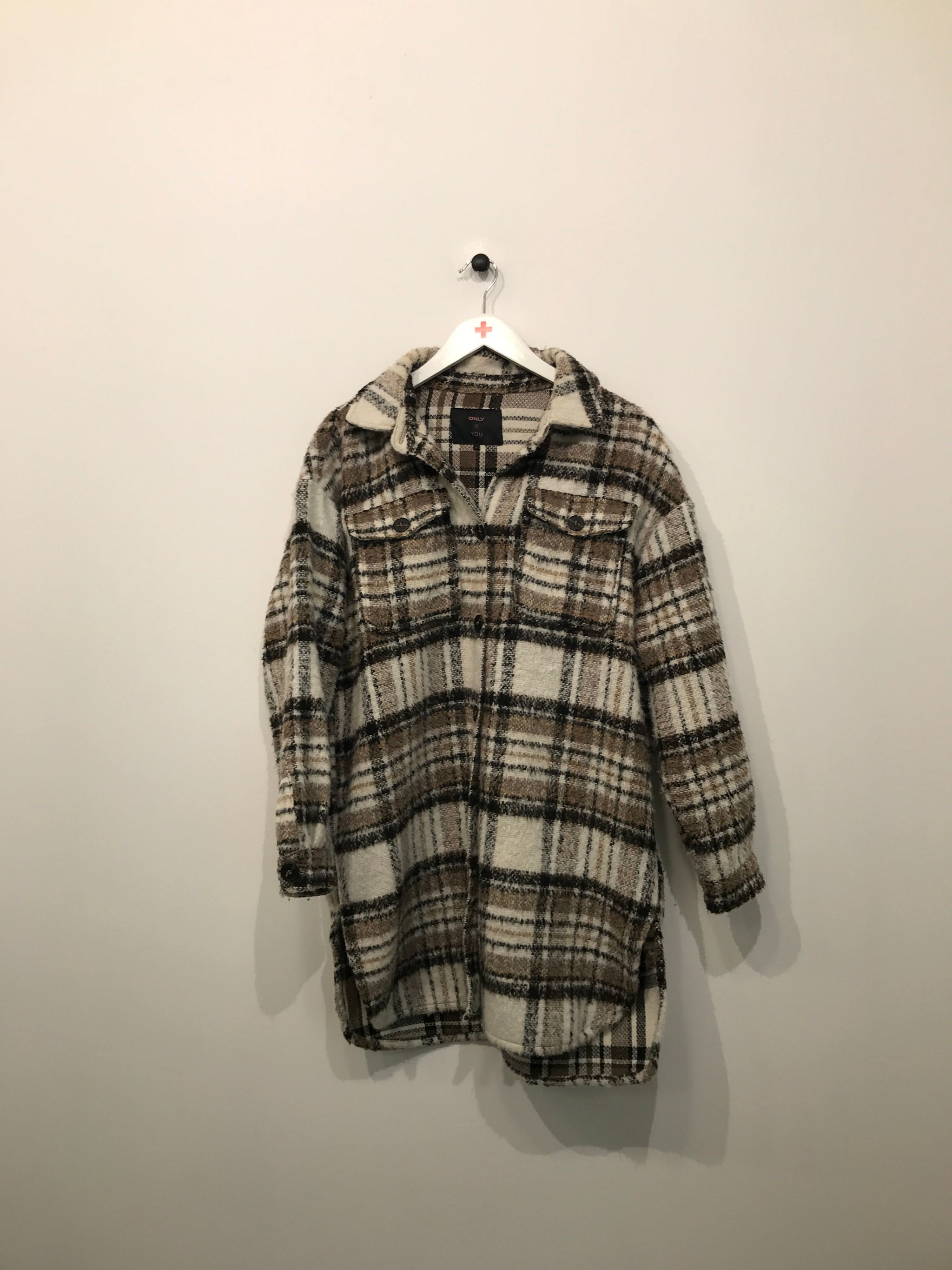 Skøn "skjortefrakke" i skovmands-tern med knaplukning og lommer