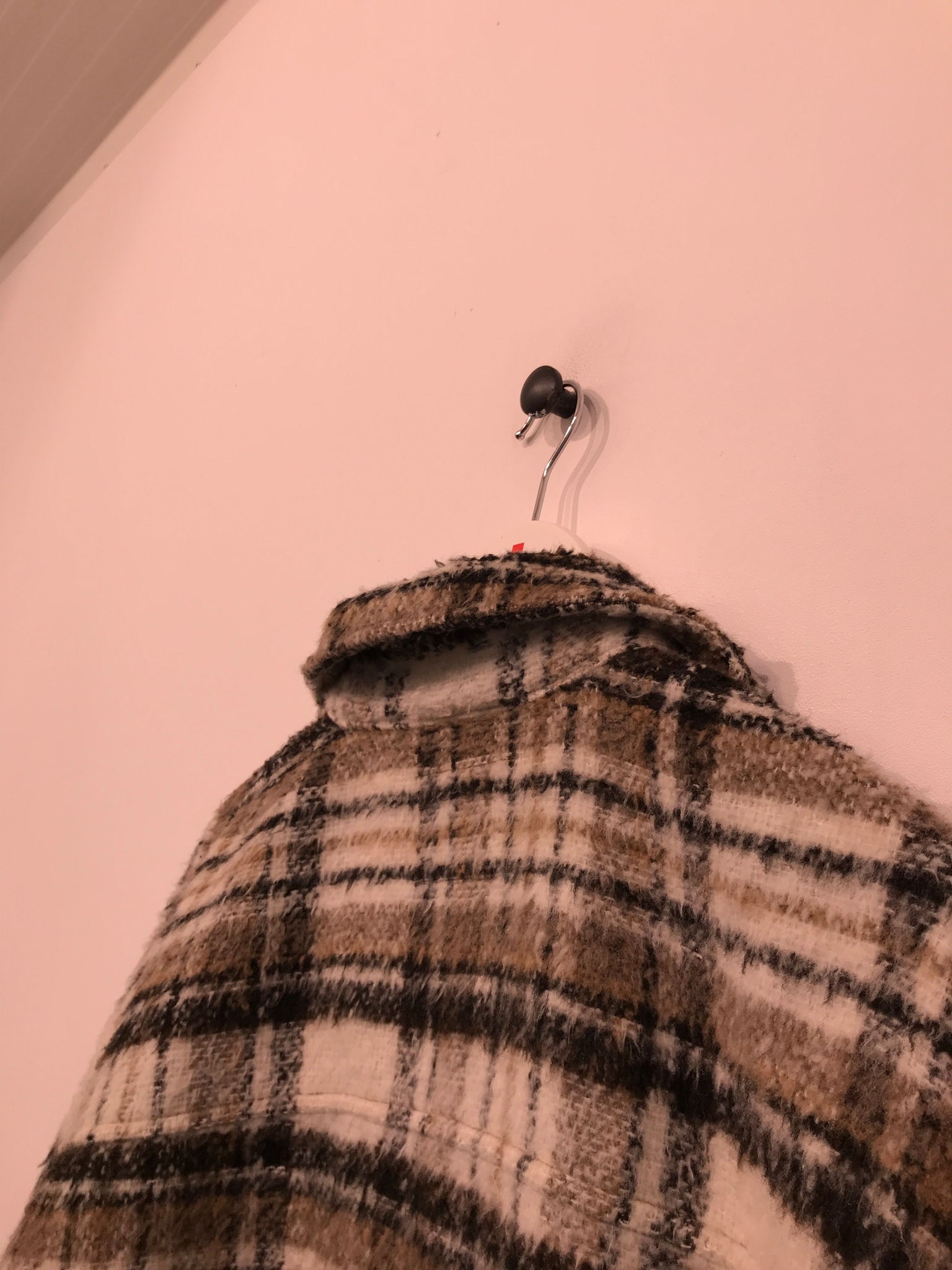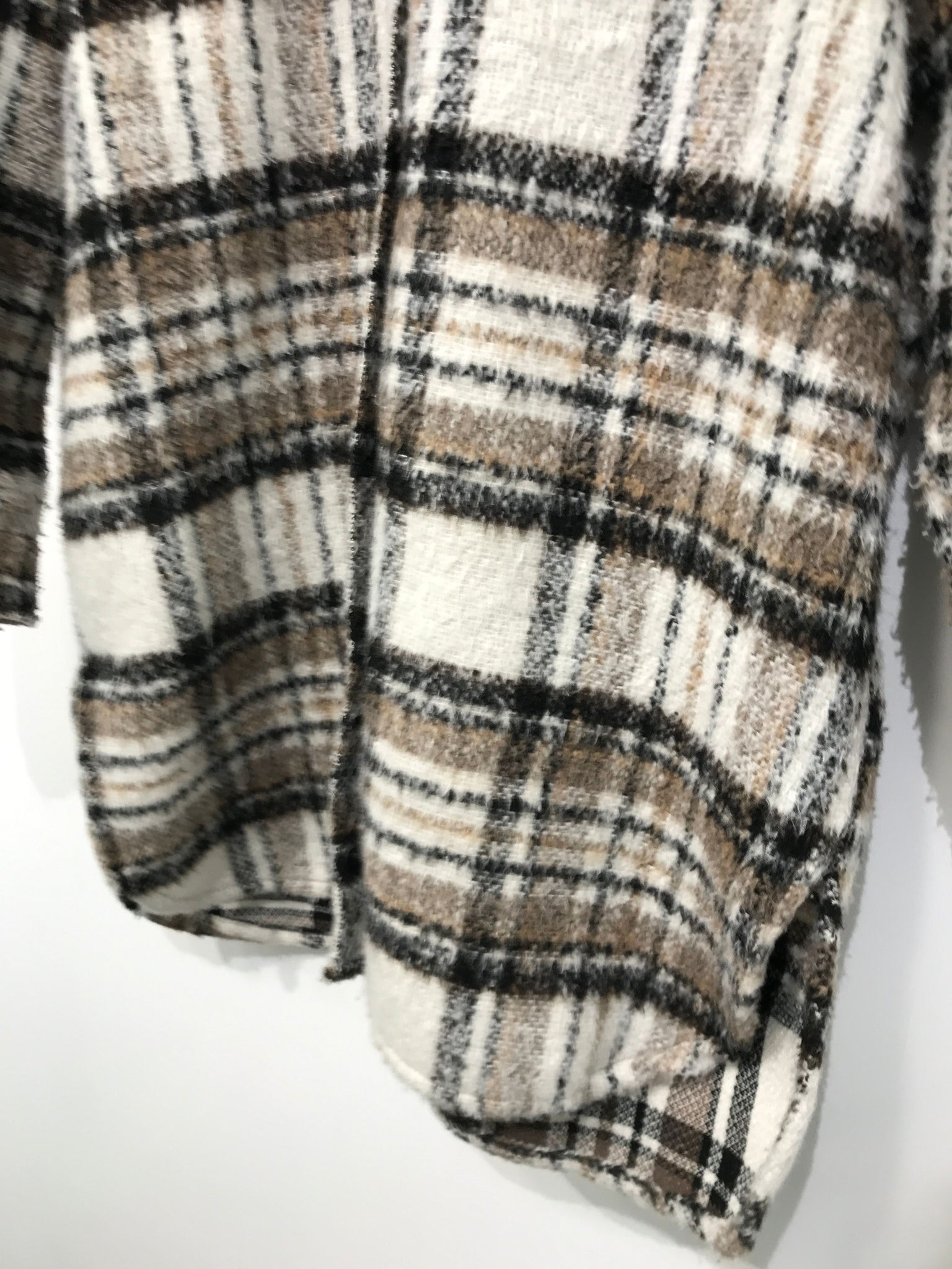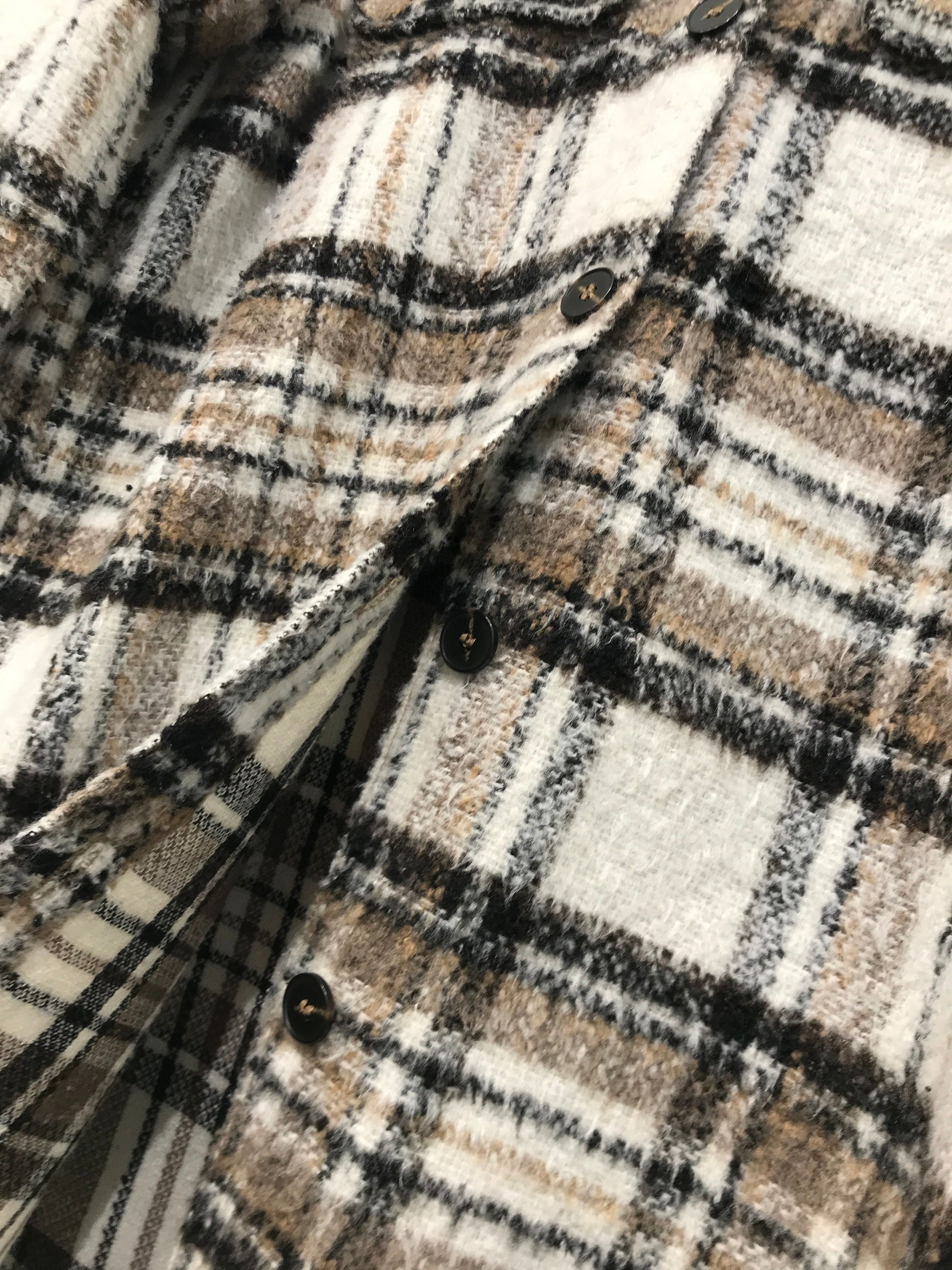 Skøn "skjortefrakke" i skovmands-tern med knaplukning og lommer