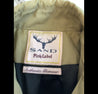 O503 Jakken er 98cm lang, knaplukket med to lommer, og har en klassisk krave. Med små brugsspor - se billeder