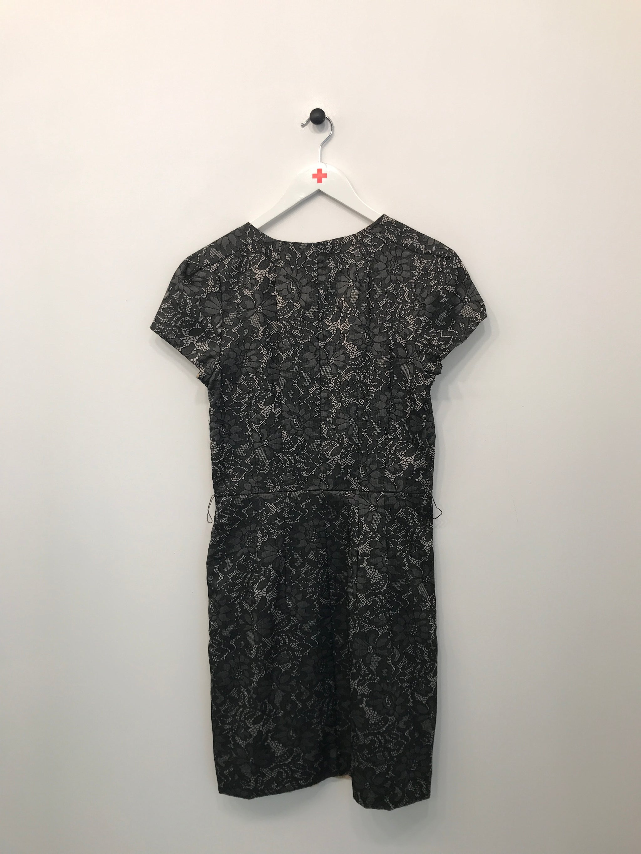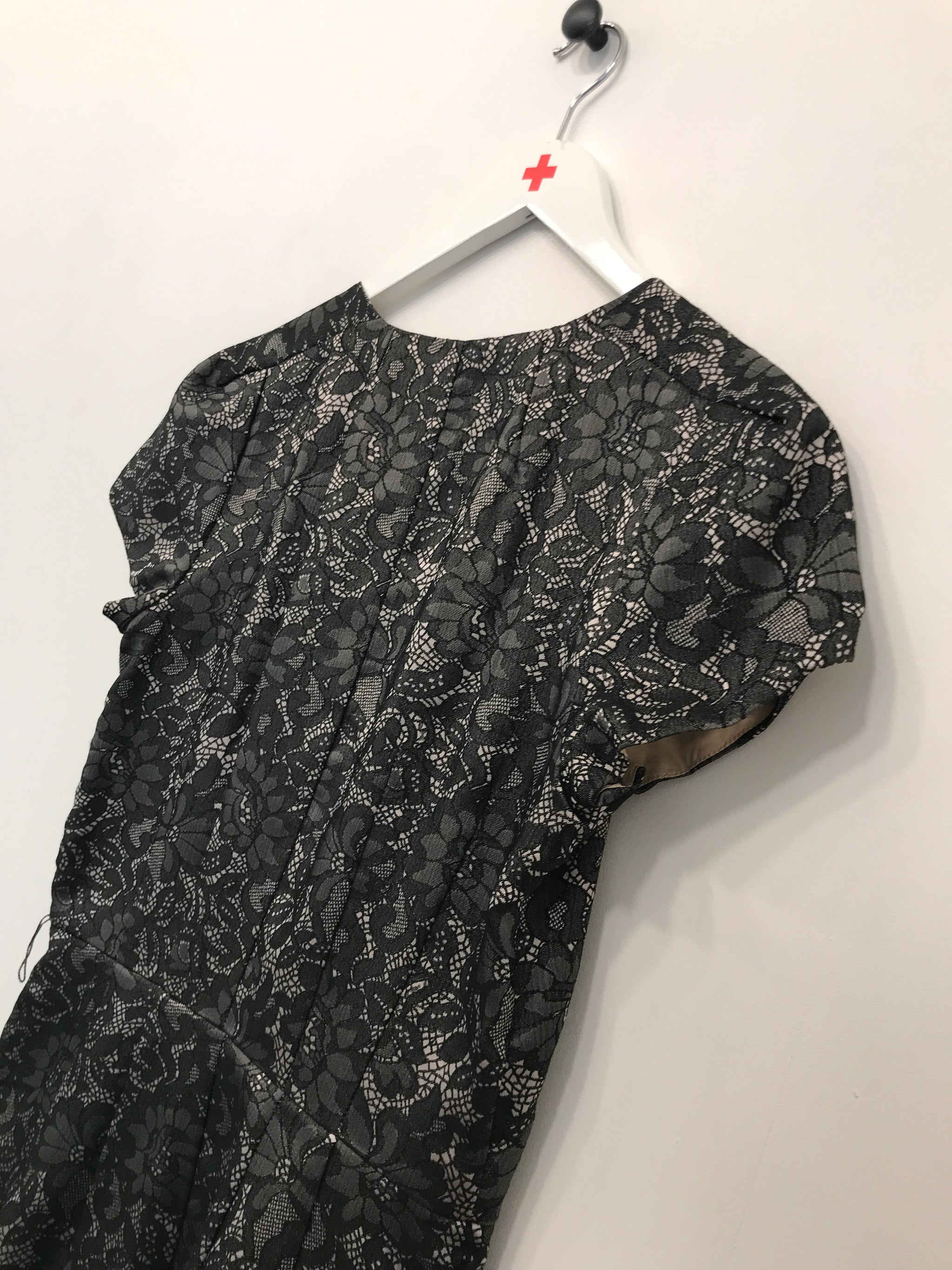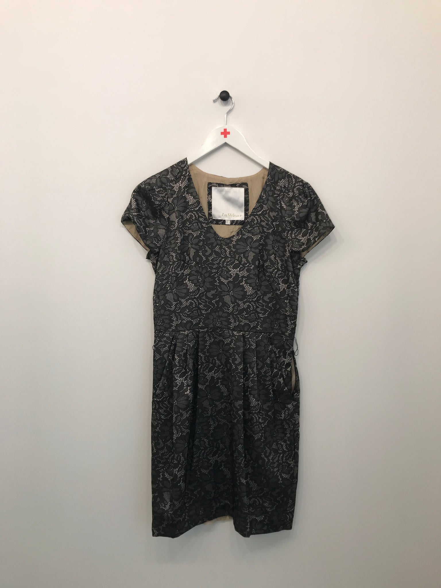 Kjole med læg, V udskæring, korte ærmer, lynlåslukning i side.
