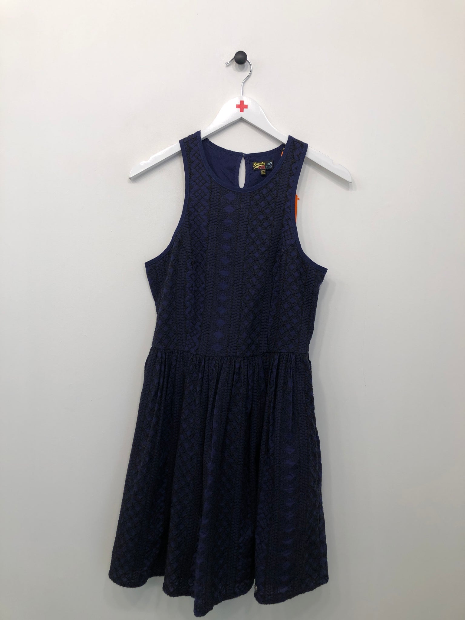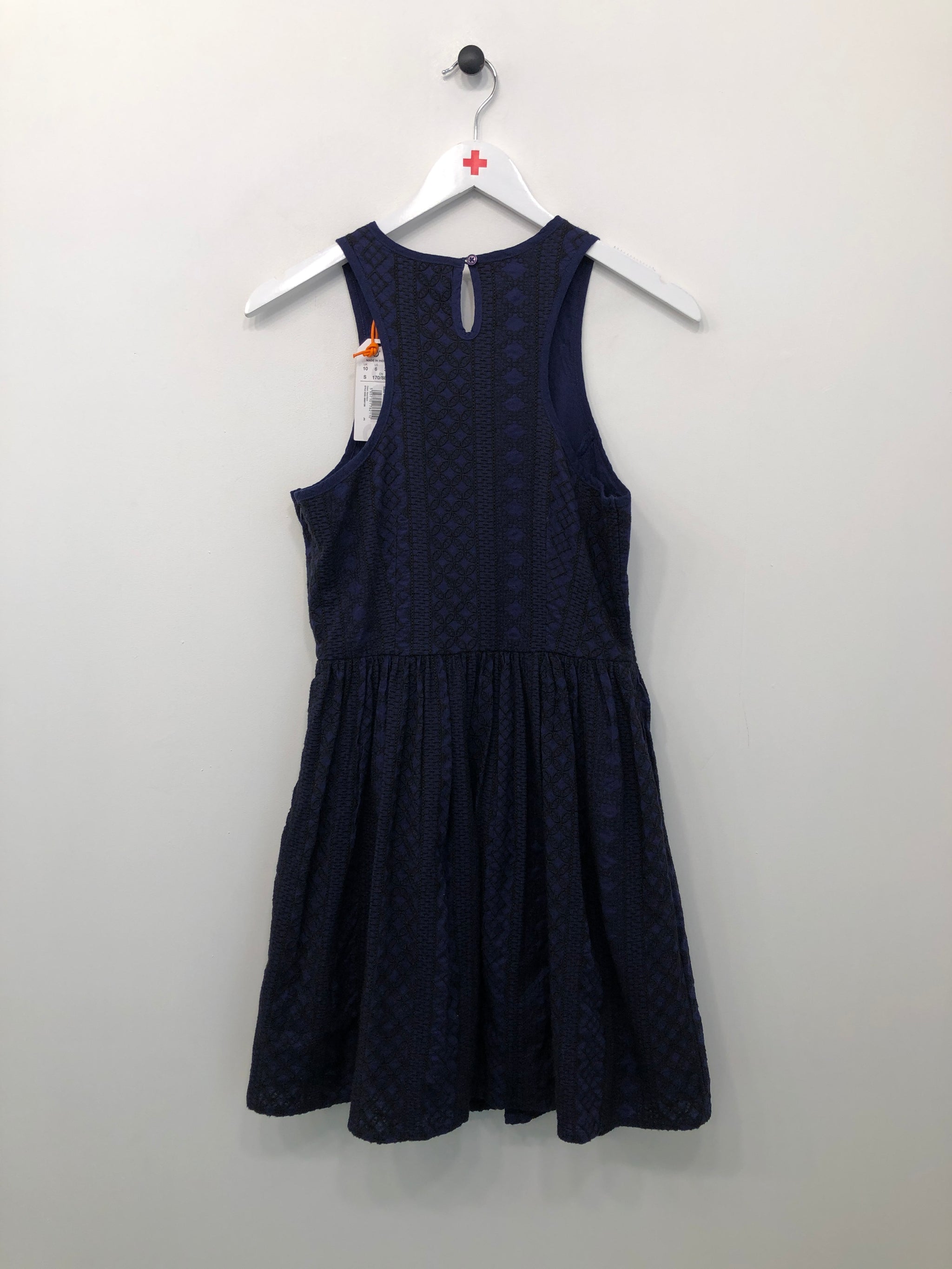 Ærmeløs kjole med vidde, rund hals og knaplukning i ryg.