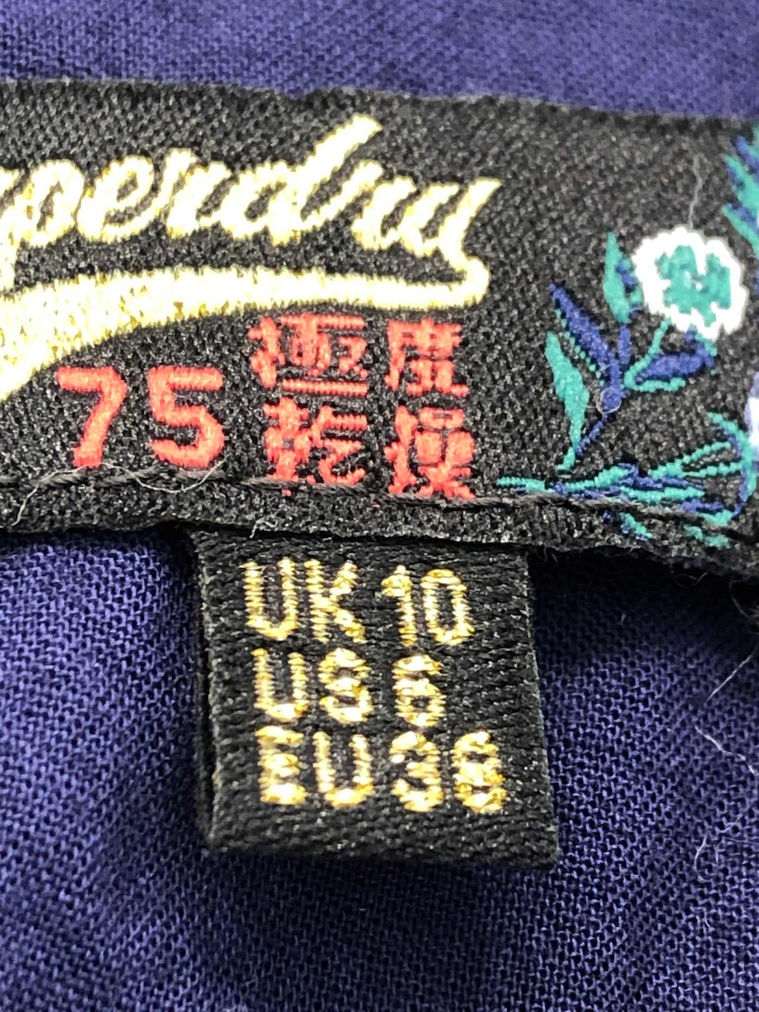 Da vi sælger brugt tøj, der er blevet vasket, kan vi ikke garantere, at størrelsesangivelsen ligger inden for en standardskala.