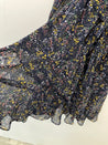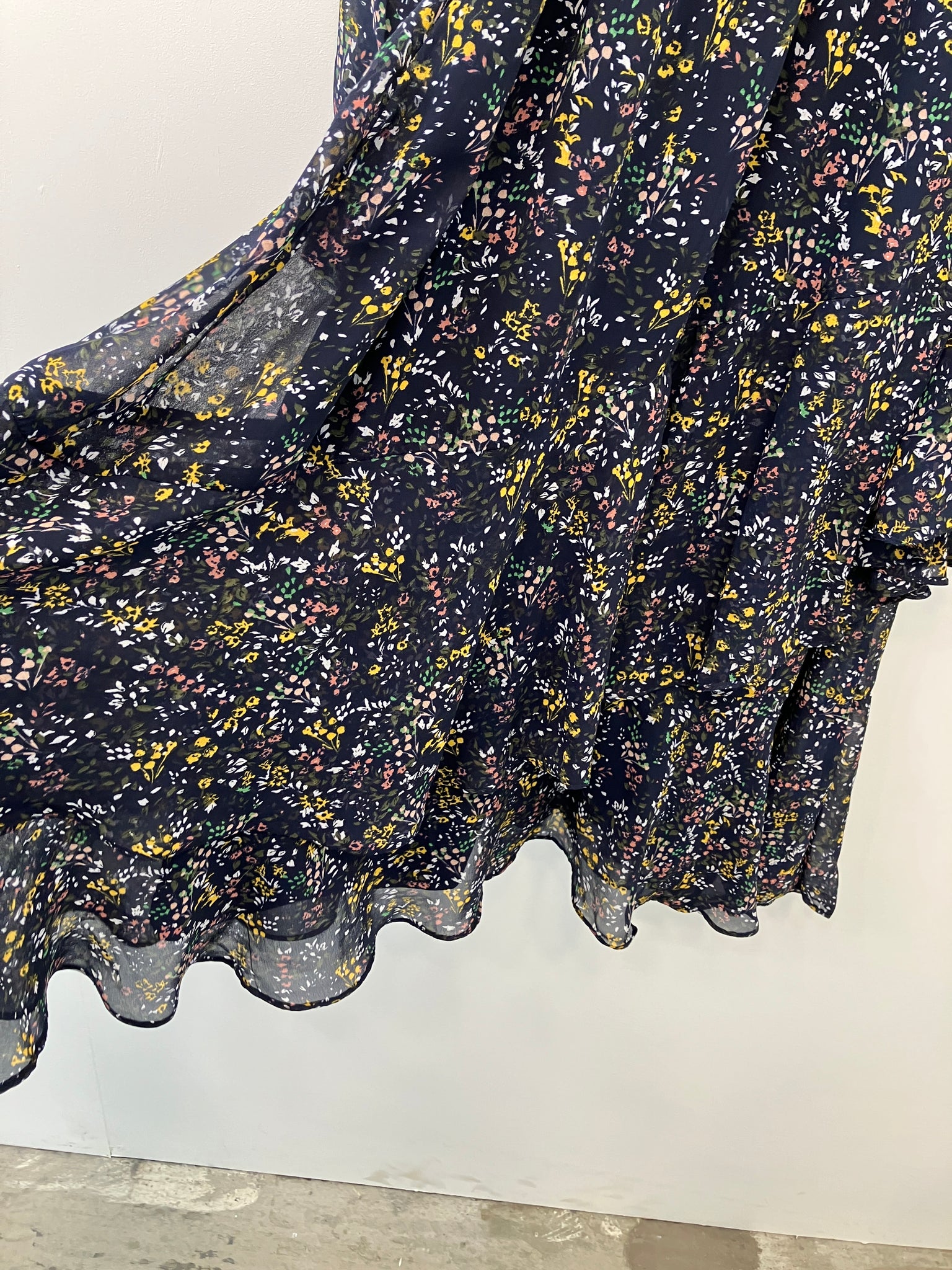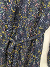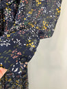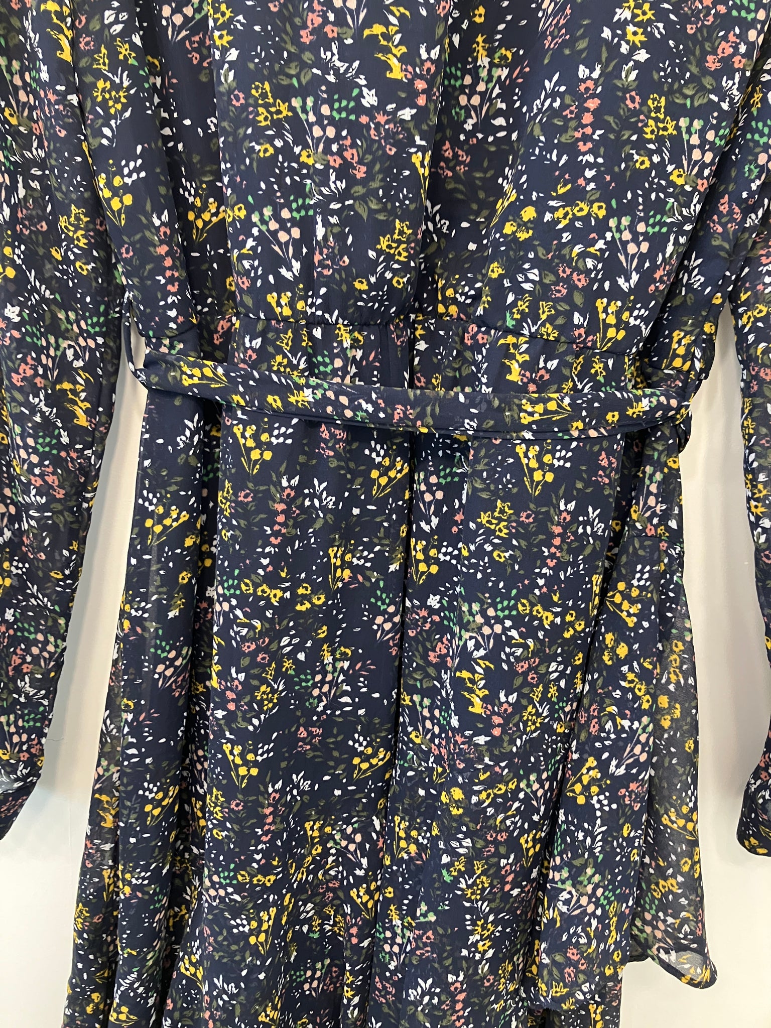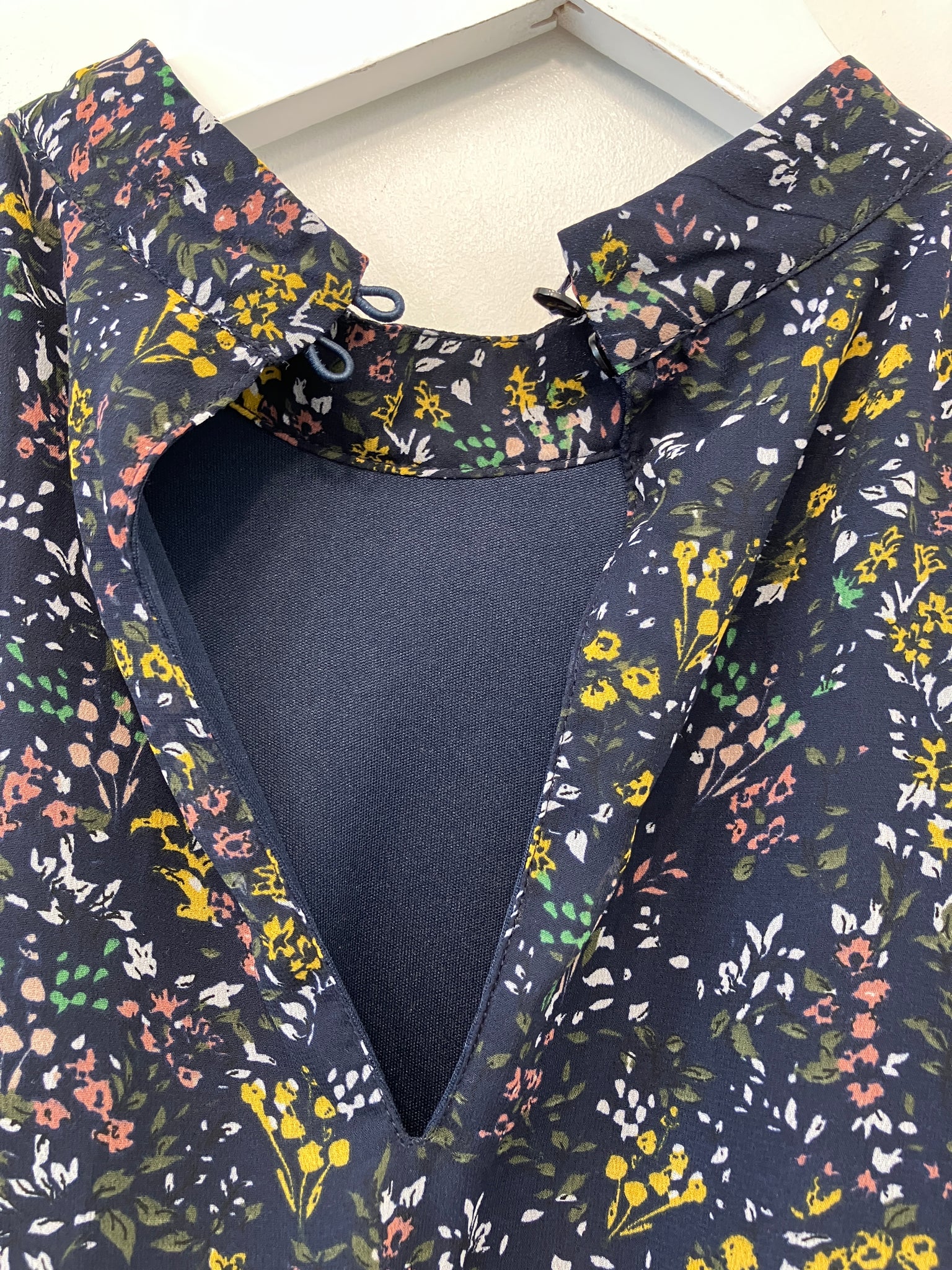 Kjole med flæse, rund hals, lange ærmer med knaplukning, Bindebælte i talje og knaplukning i ryg.