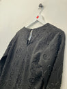 Da vi sælger brugt tøj, der er blevet vasket, kan vi ikke garantere, at størrelsesangivelsen ligger inden for en standardskala.