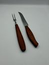 Sættet består af en gaffel og en kniv med ergonomiske træhåndtag og rustfrit stålblad. Ekstrem flot sæt i teaktræ