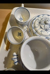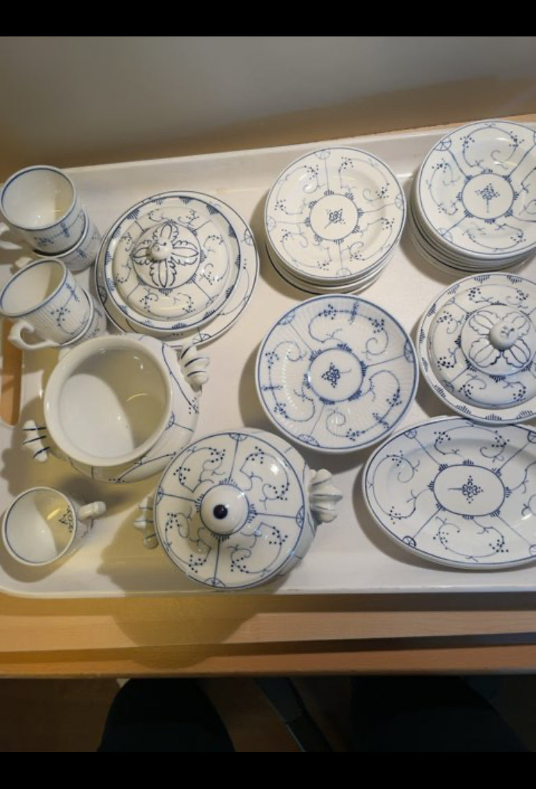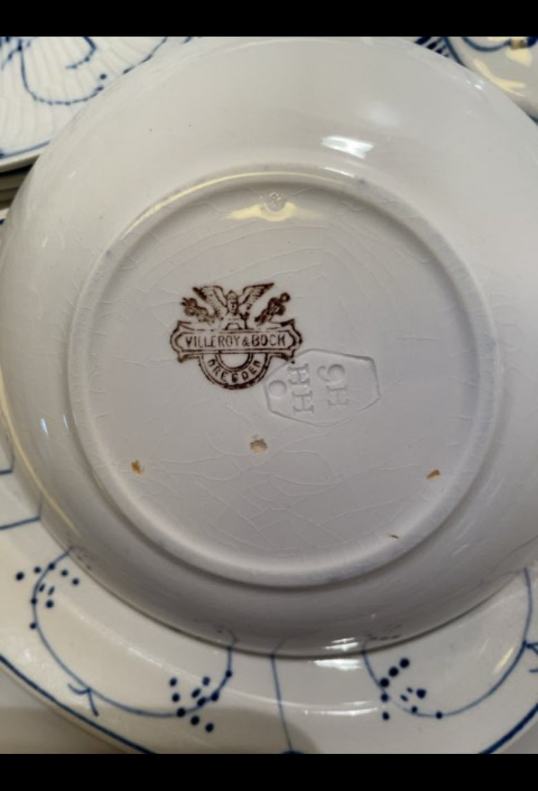 Servicet er et musselmalet dukkestel fra Villeroy & Boch. Det er lavet af porcelæn. Der er mange forskellige dele, blandt andet kopper, tallerkener og skåle.
