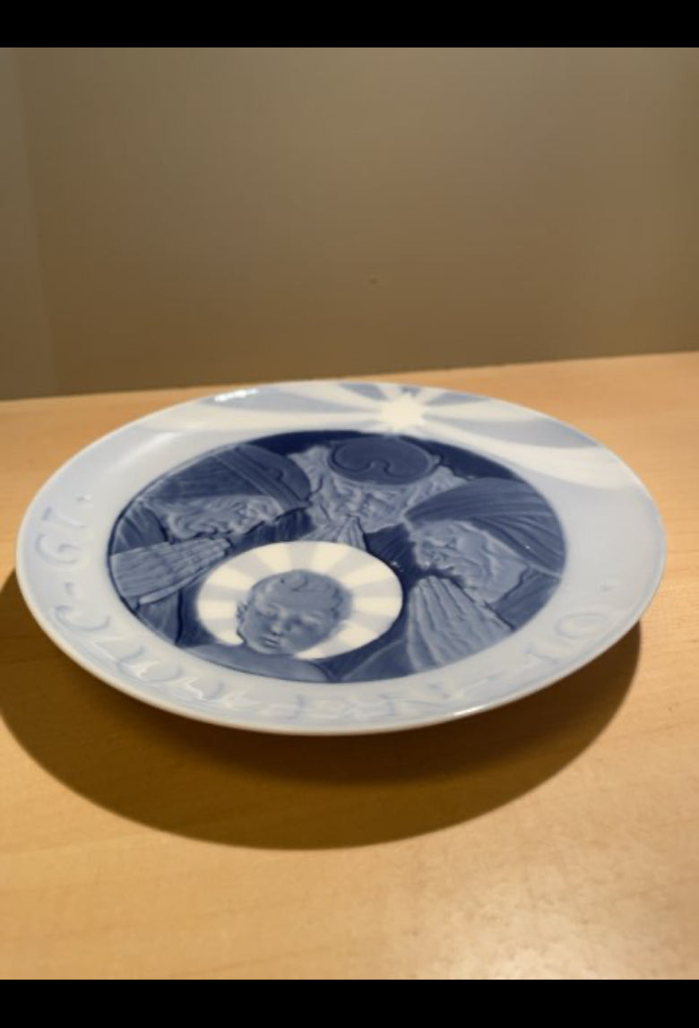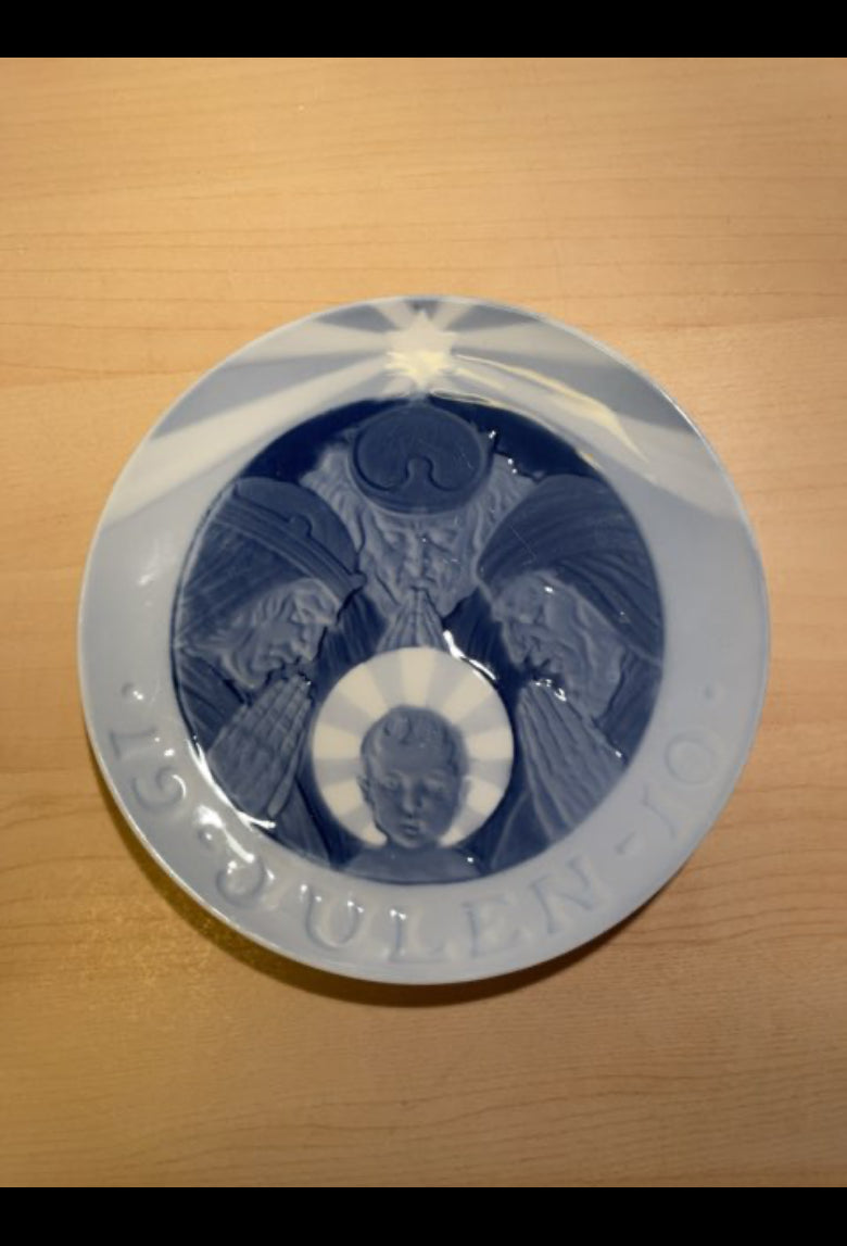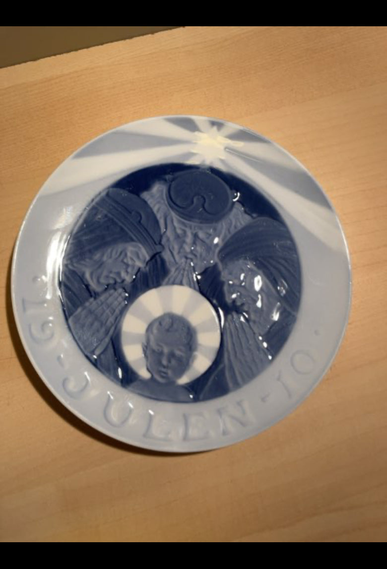 Juleplatten fra Royal Copenhagen er fra 1910. Den forestiller De hellige tre konger og er lidt mindre end de efterfølgende platter. Den er i fin stand, ingen skår