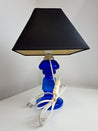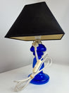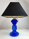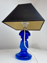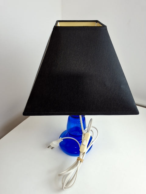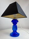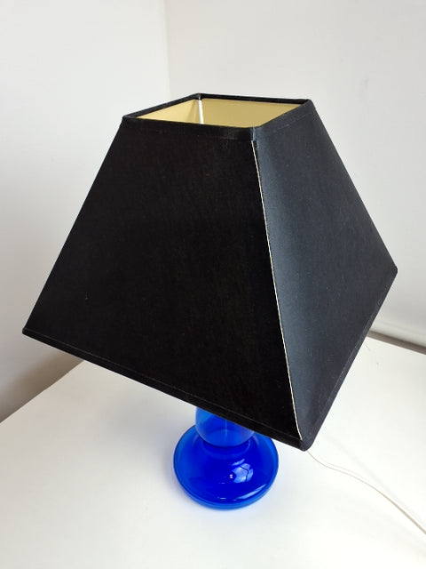 Lampeskærmen er sort, mens lampen er lavet af blåt glas med en glat finish. Højde 40 cm