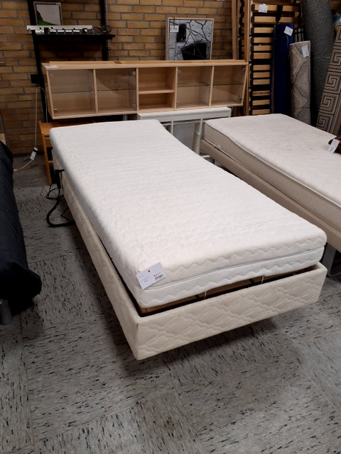 Elevationsseng 90x200 cm. Madrassen har en quiltet overflade og en polstret kant. Den er lavet af blødt skum.