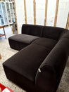 Hjørnesofa som kan deles i velour stof.