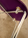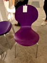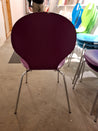 Skal Stolen har en organisk form med en glat overflade er lavet af bemalet træ med metalben. Lilla farve