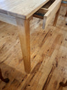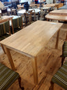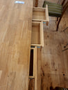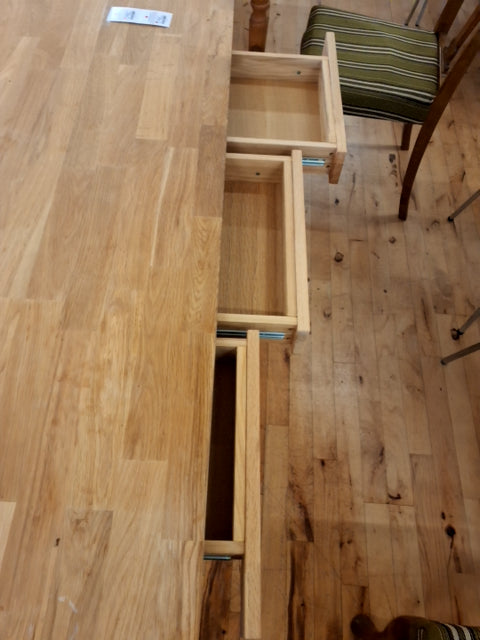 Spisebordet giver plads til 6 personer, uden at tage for meget plads op. Bordet er forsynet med 3 smarte skuffer i sargen. Det er lavet af massivt træ, så det er muligt at slibe bordpladen.