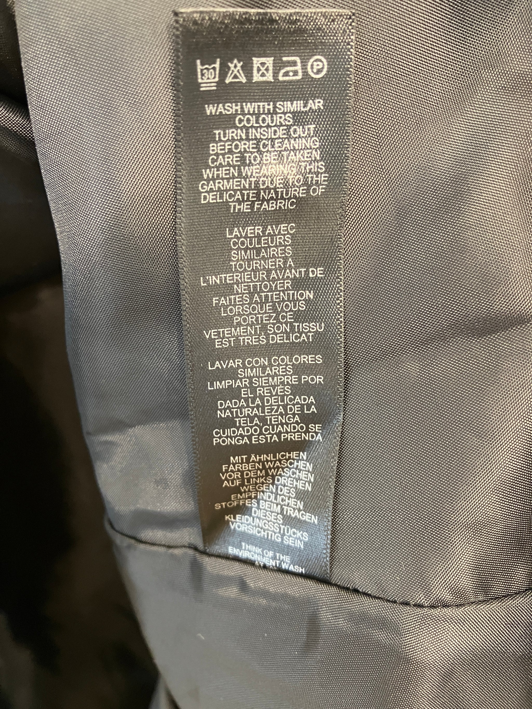 Da vi sælger brugt tøj, der er blevet vasket, kan vi ikke garantere, at størrelsesangivelsen ligger inden for en standardskala.