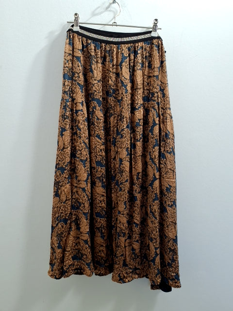 O327 Nederdelen har et blødt, let materiale med et mønster af blomster i kontrasterende farver.