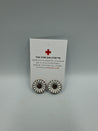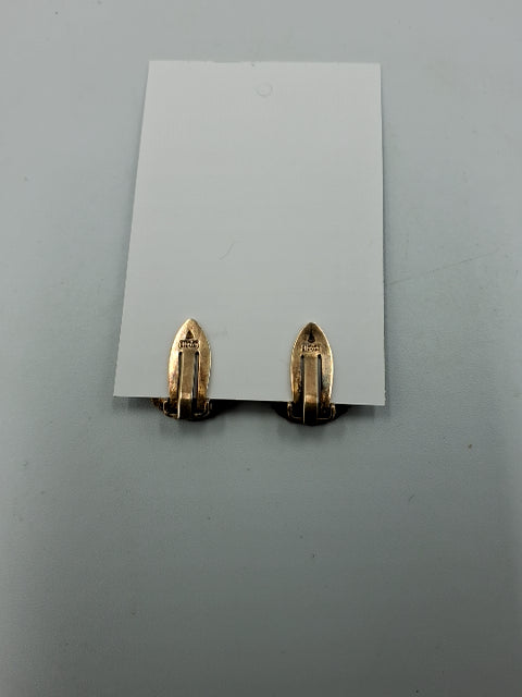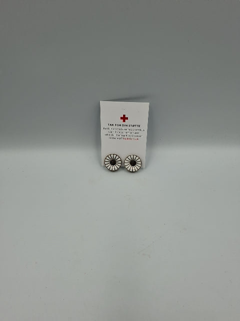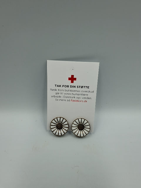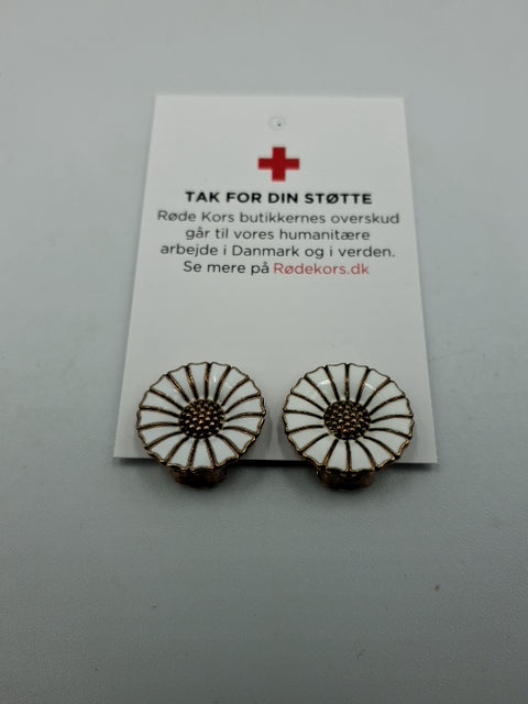 Øreclips har en blomsterform med hvid emalje og en gylden kant.