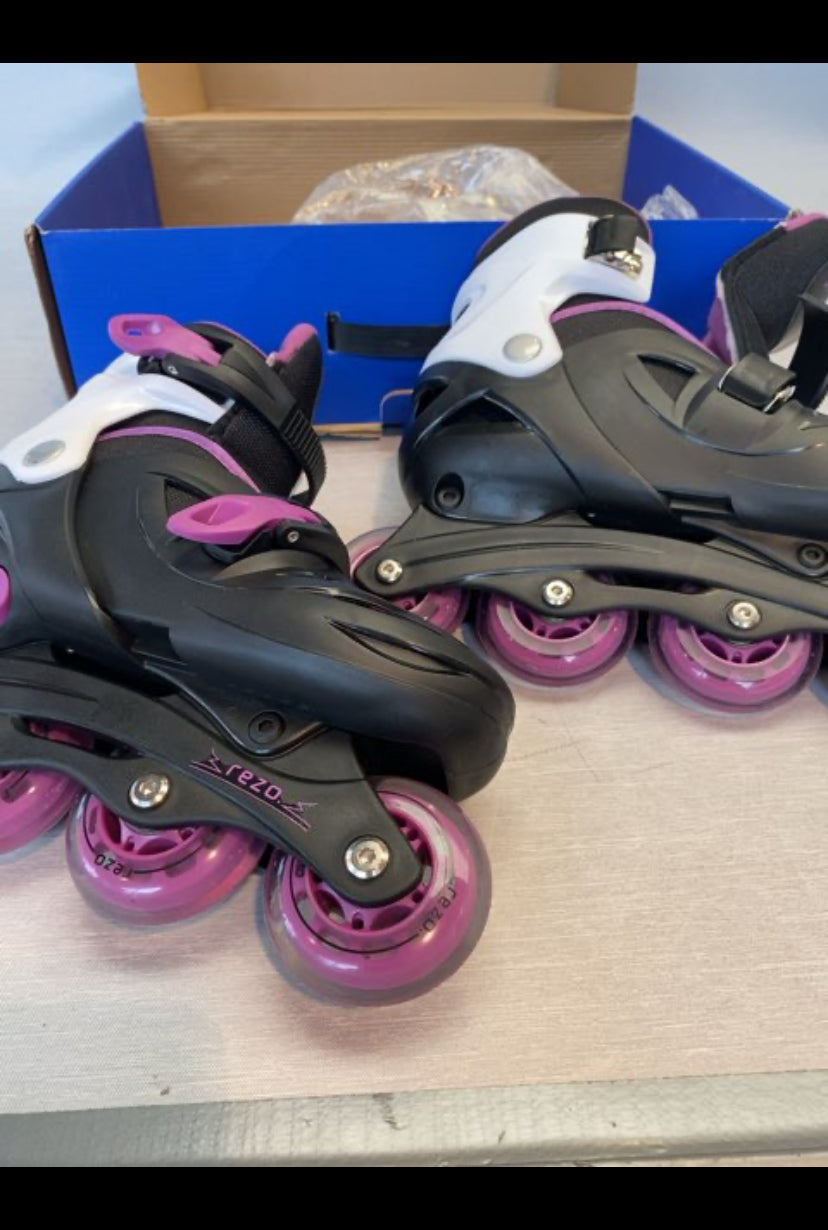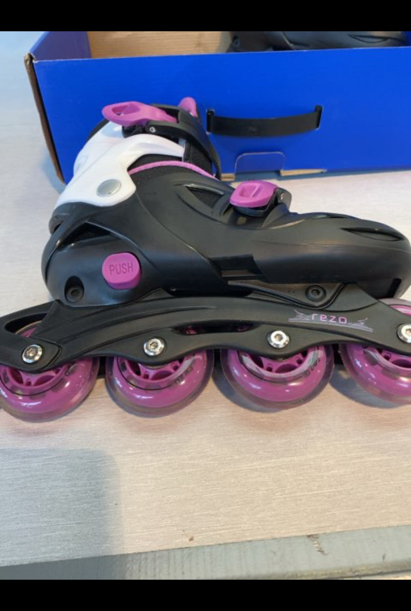 Produktet er rulleskøjter med et sort og pink design. De har en solid støvle med justerbare spænder og en letvægtig ramme. Hjulene er i en matchende pink farve. Str 31-35