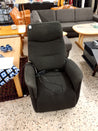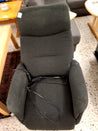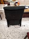 Stolen har et polstret sæde- og rygparti samt armlæn. Den er betrukket med mørkt stof. Stolen har vippefunktion.
