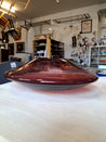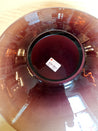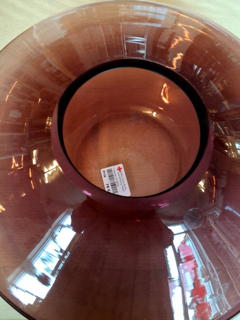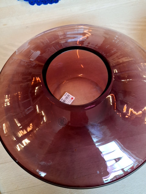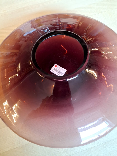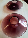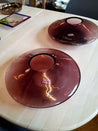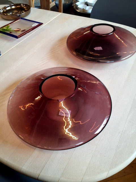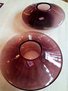 2 dekorative vaser i en bølget skålform/ufo-formet. Er lavet af gennemsigtigt glas i en mørk vinfarve. Designet af HW. Prisen er pr stk