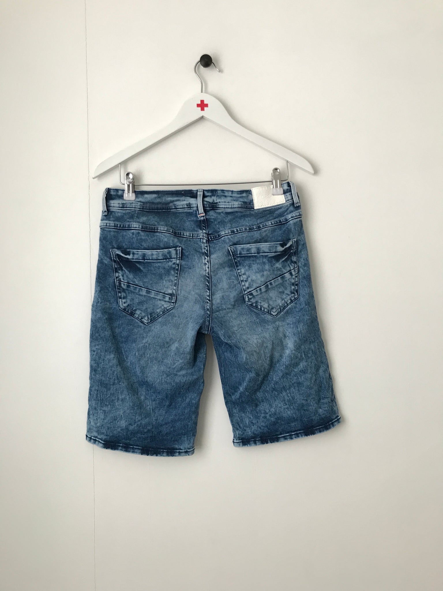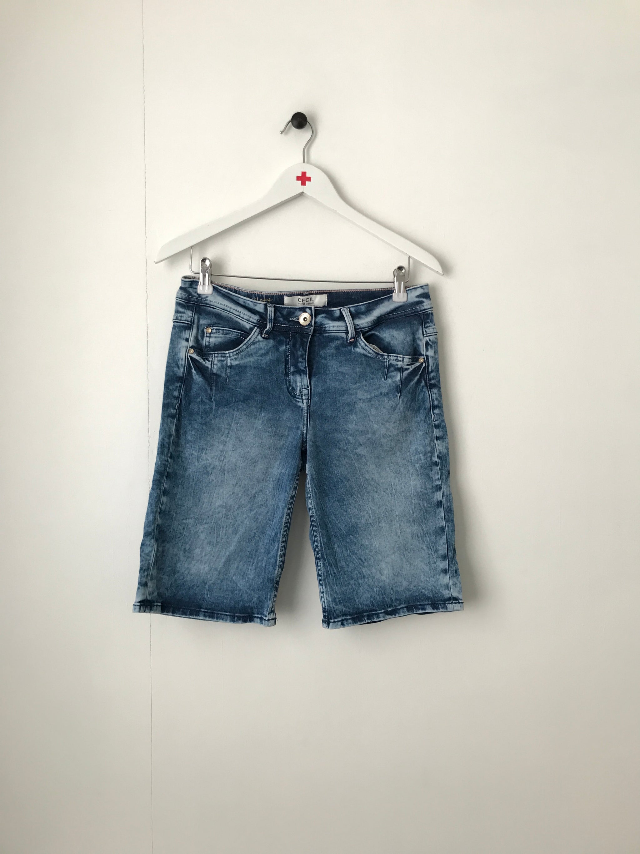 Denim shorts med ben, knaplukning, lommer for og bag.