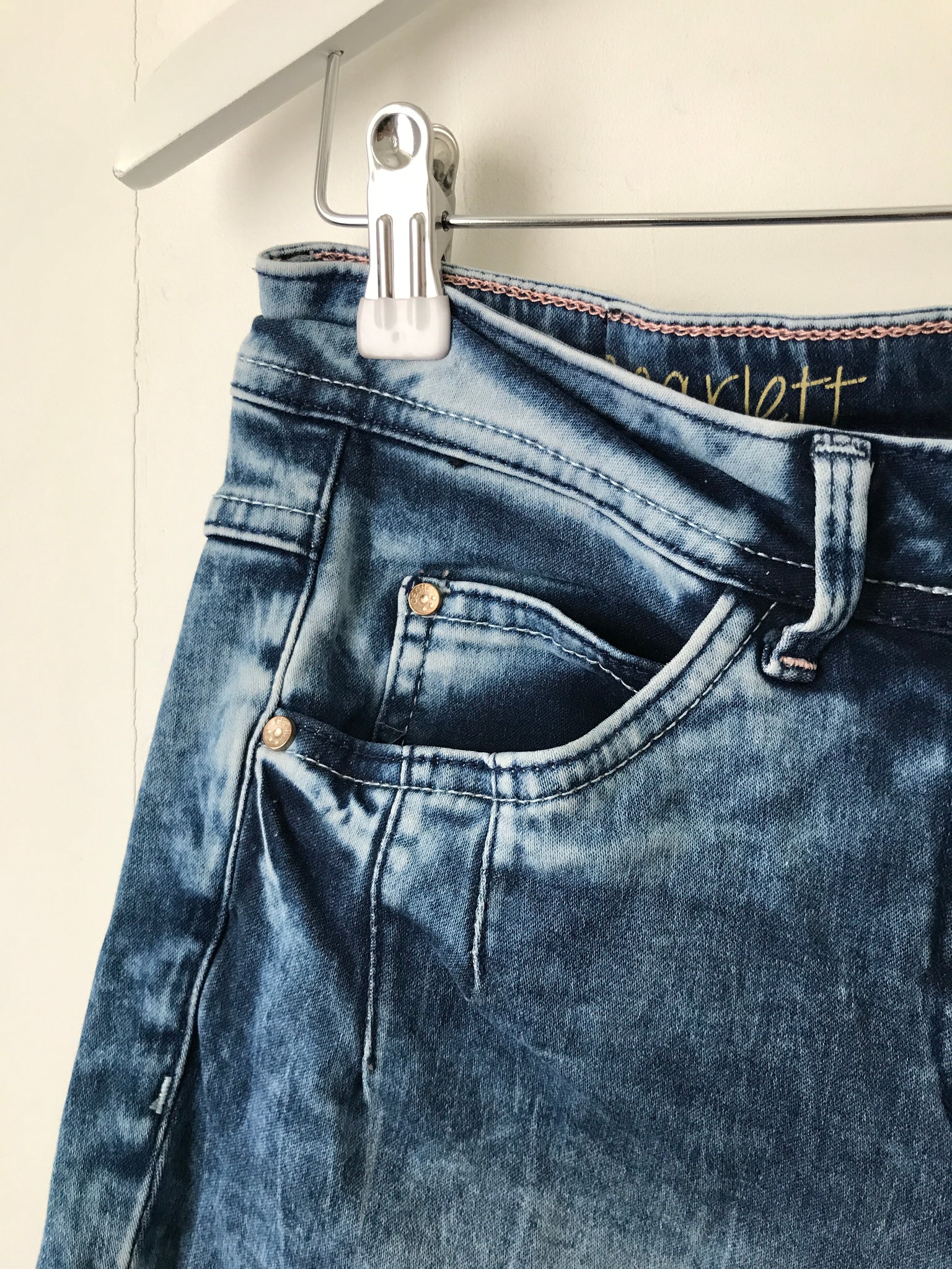 Da vi sælger brugt tøj, der er blevet vasket, kan vi ikke garantere, at størrelsesangivelsen ligger inden for en standardskala.