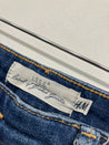 Da vi sælger brugt tøj, der er blevet vasket, kan vi ikke garantere, at størrelsesangivelsen ligger inden for en standardskala.
