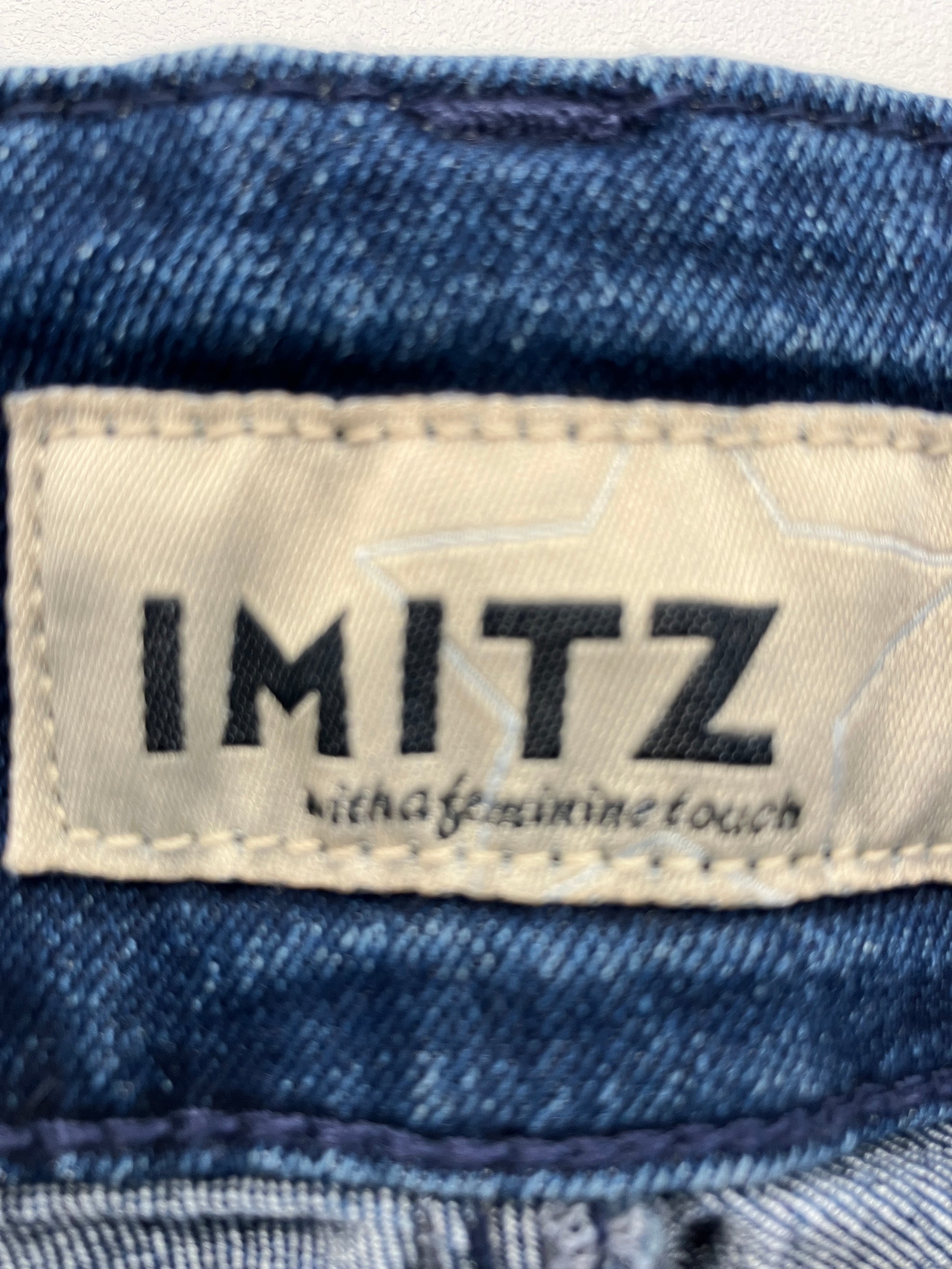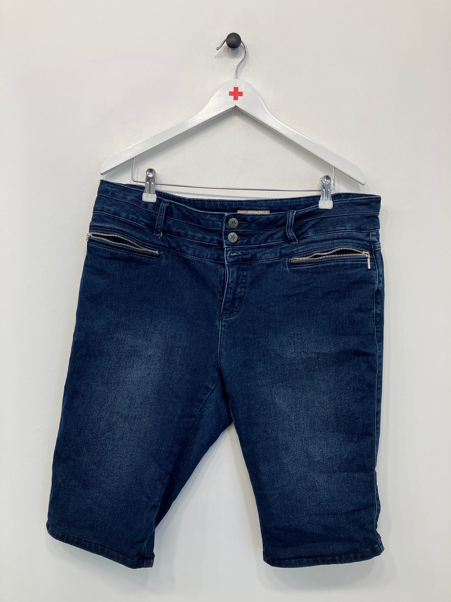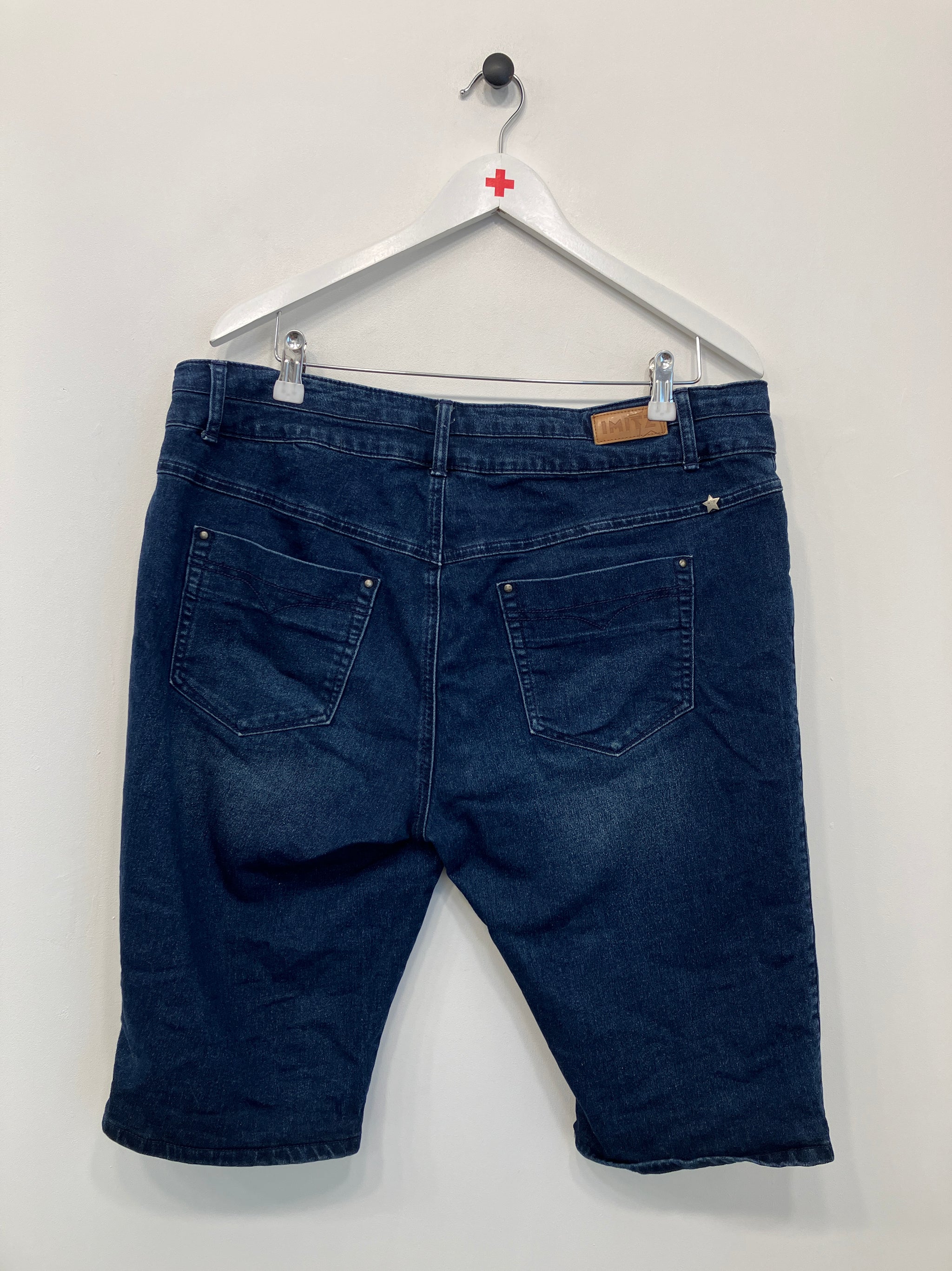 Denimshorts med bæltestropper, baglommer, forlommer med lynlås og lukning med 3 knapper