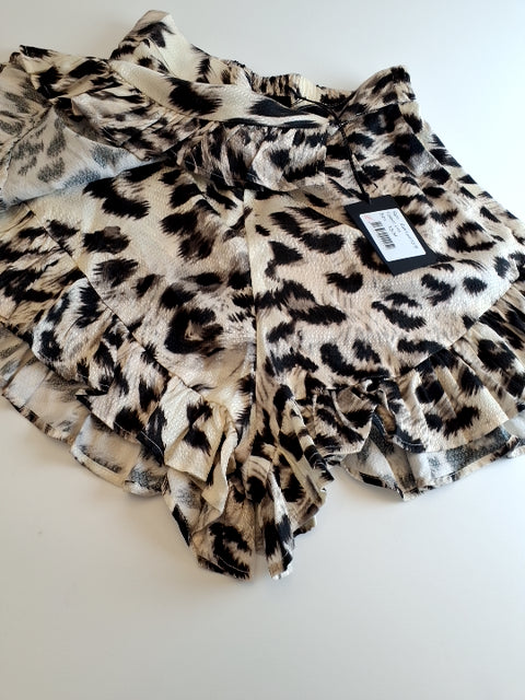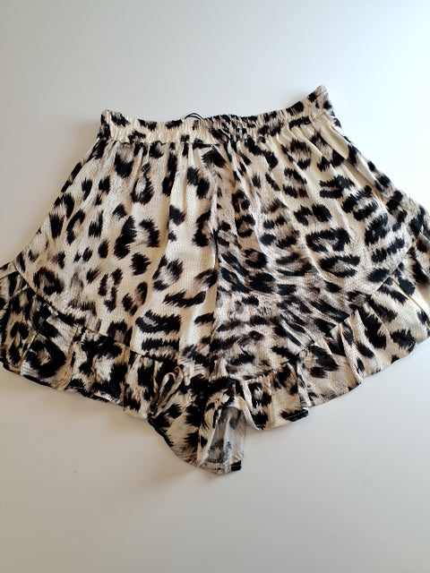 R694 Shorts med dyreprint og flæser. Elastik i taljen. Letvægtigt materiale.