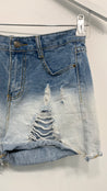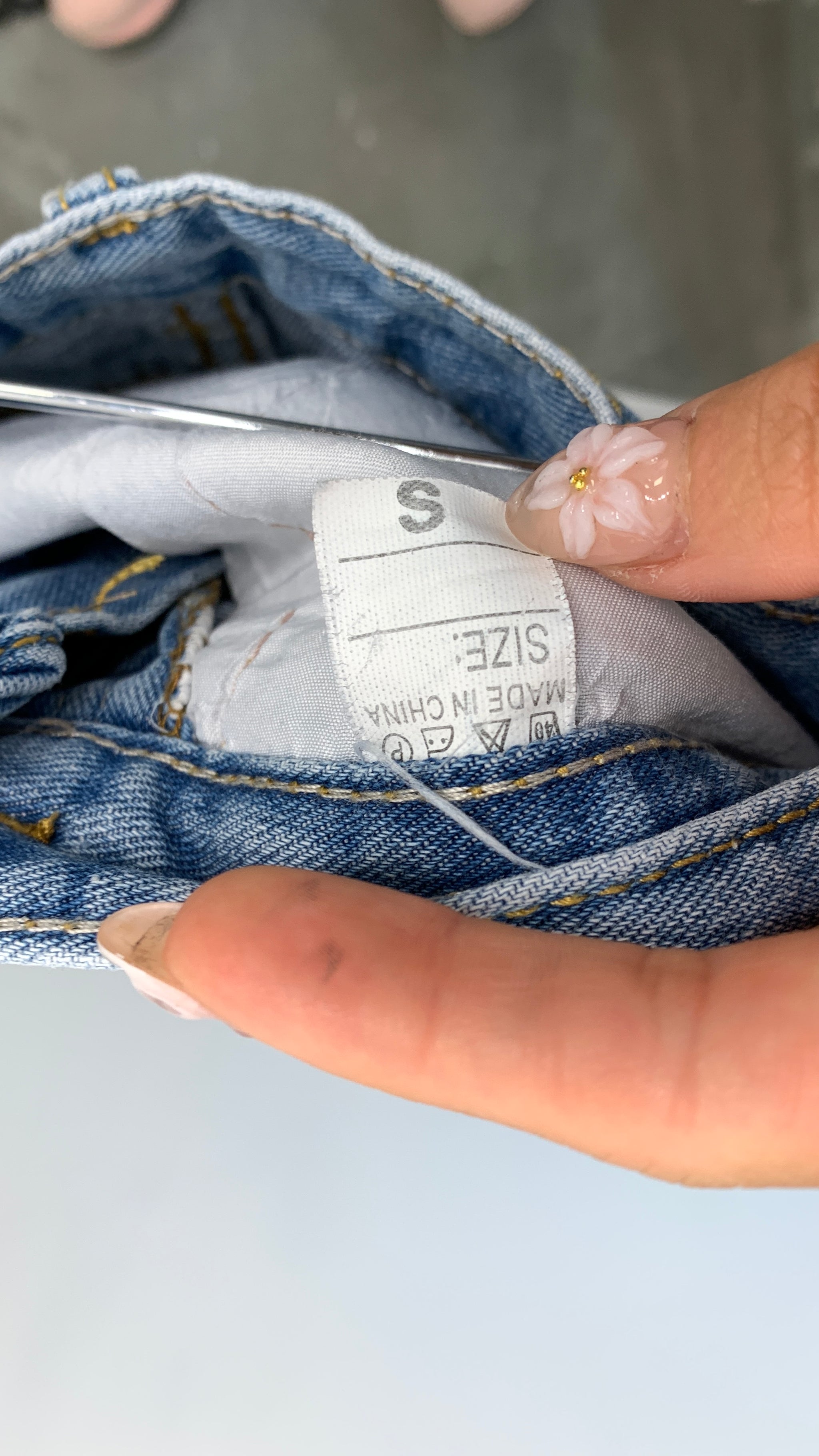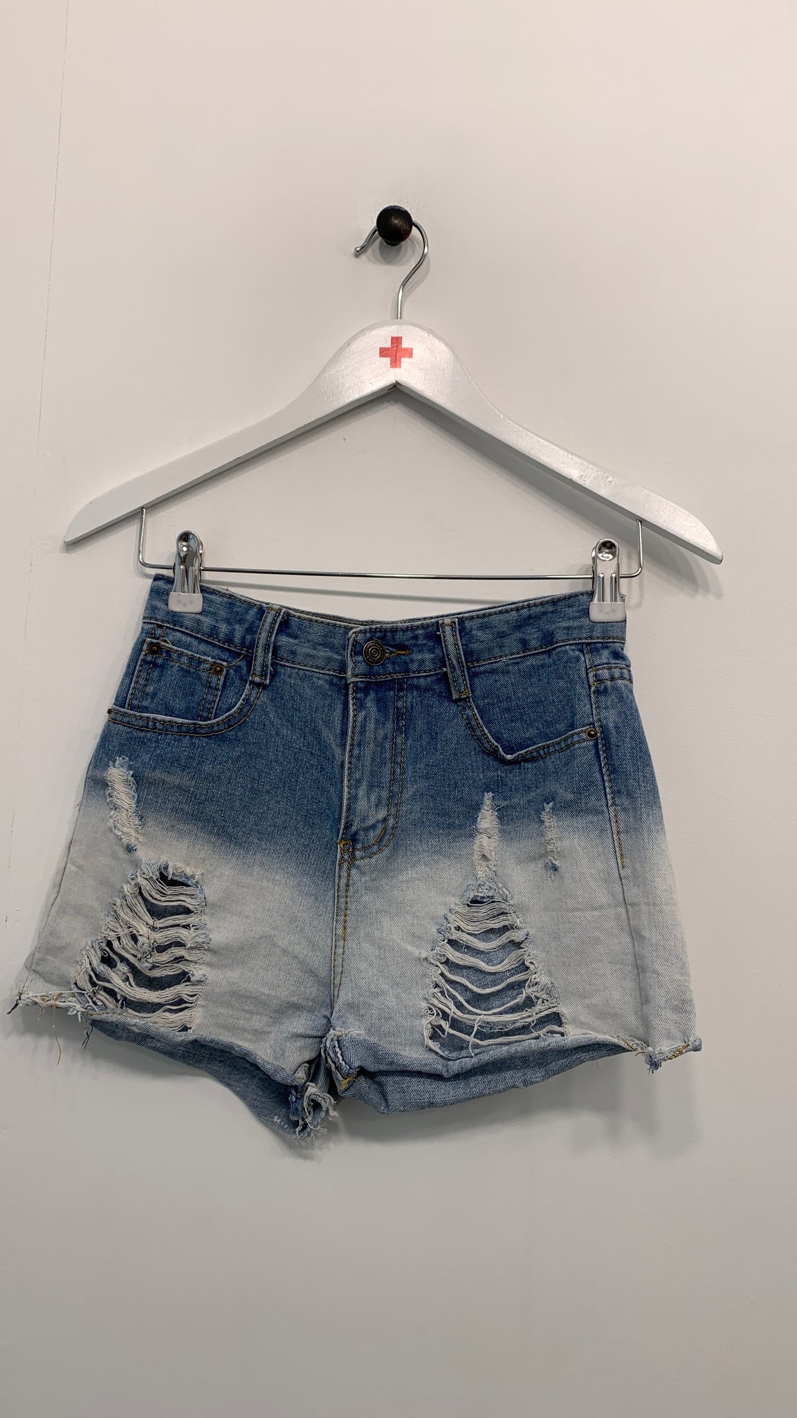 Korte jeans shorts hvor vaske mærket er klippet af.