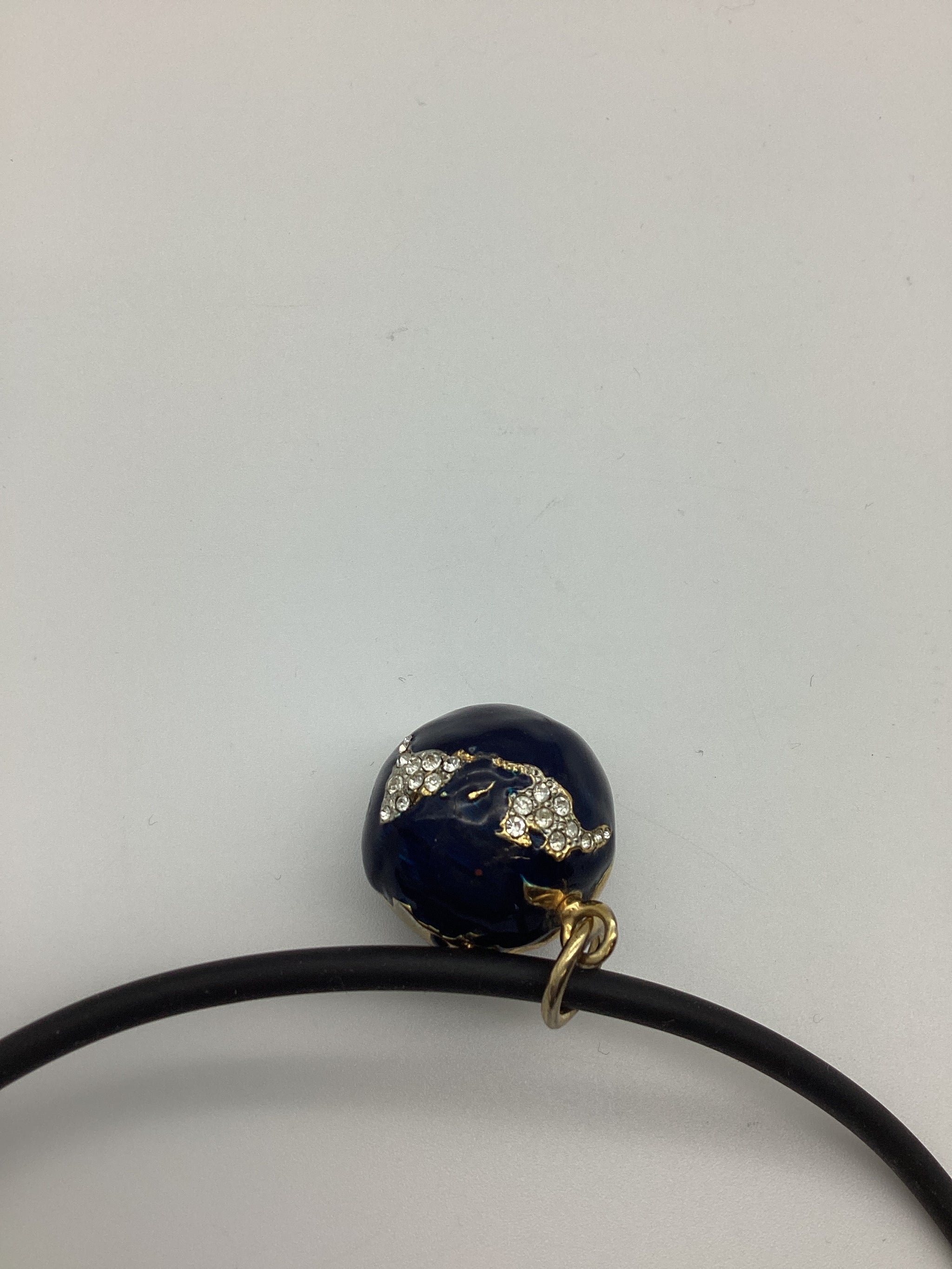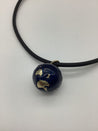 H202 Vedhænget er i en sort silikonesnor. Vedhænget er marineblåt og symboliserer jordkloden.