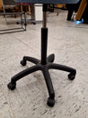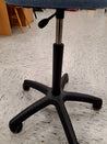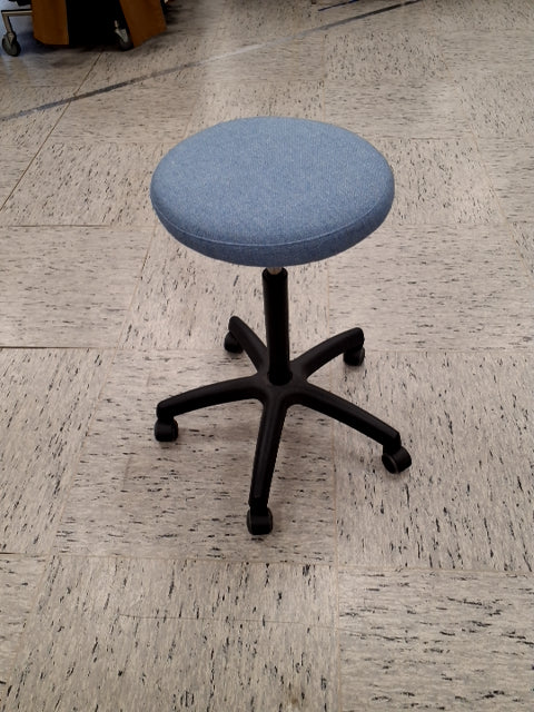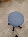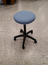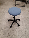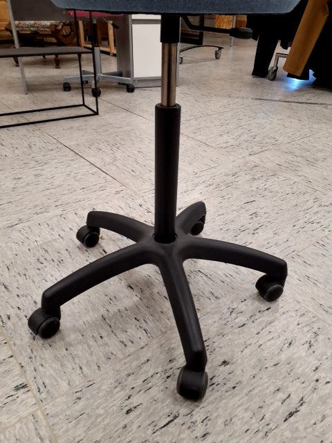 Stolen har en rund sæde i stof og en justerbar fod i kunststof. Mål : stolen er 58 cm I højden når den er helt i bund, stolen måler 68 cm når dem er helt i toppen