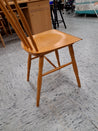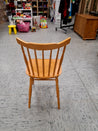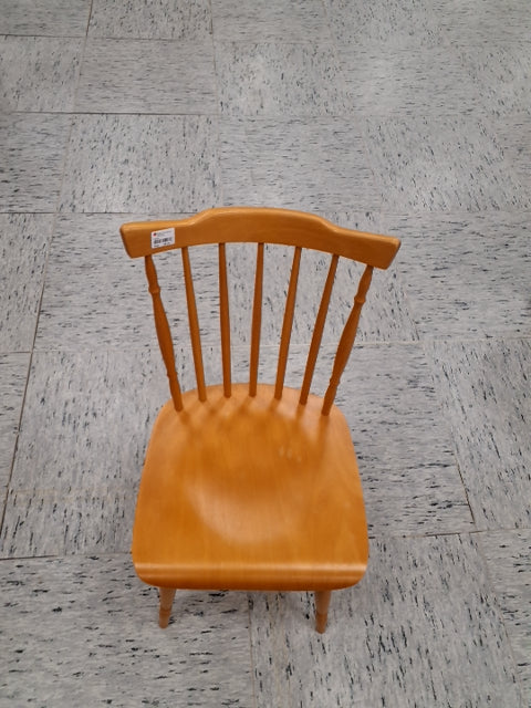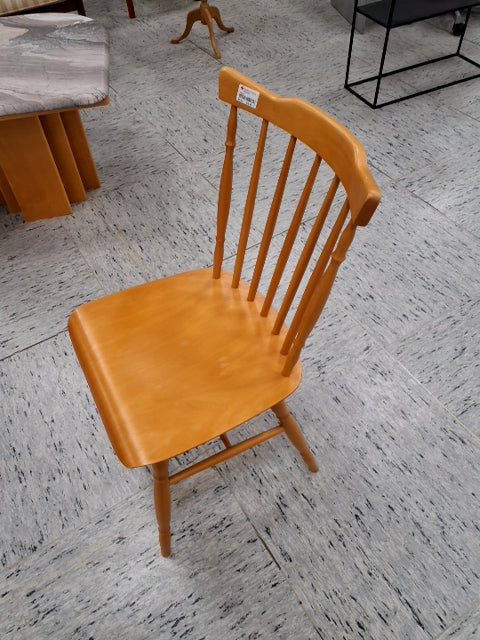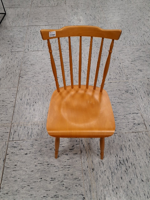 Stolen har en enkel, klassisk design med en firkantet sædeflade og spidse ben. Den er fremstillet af lys træ. Træværket har en glat overflade med synlige årer.