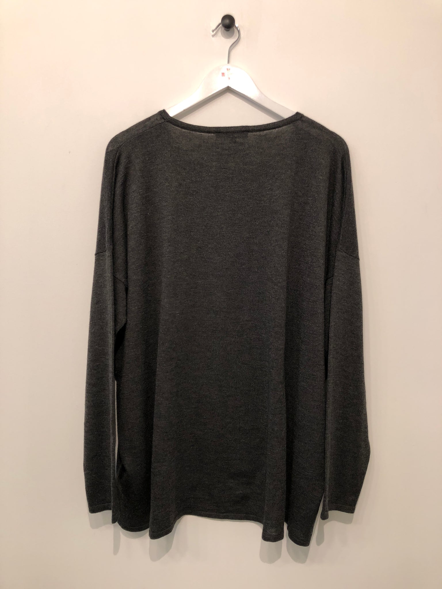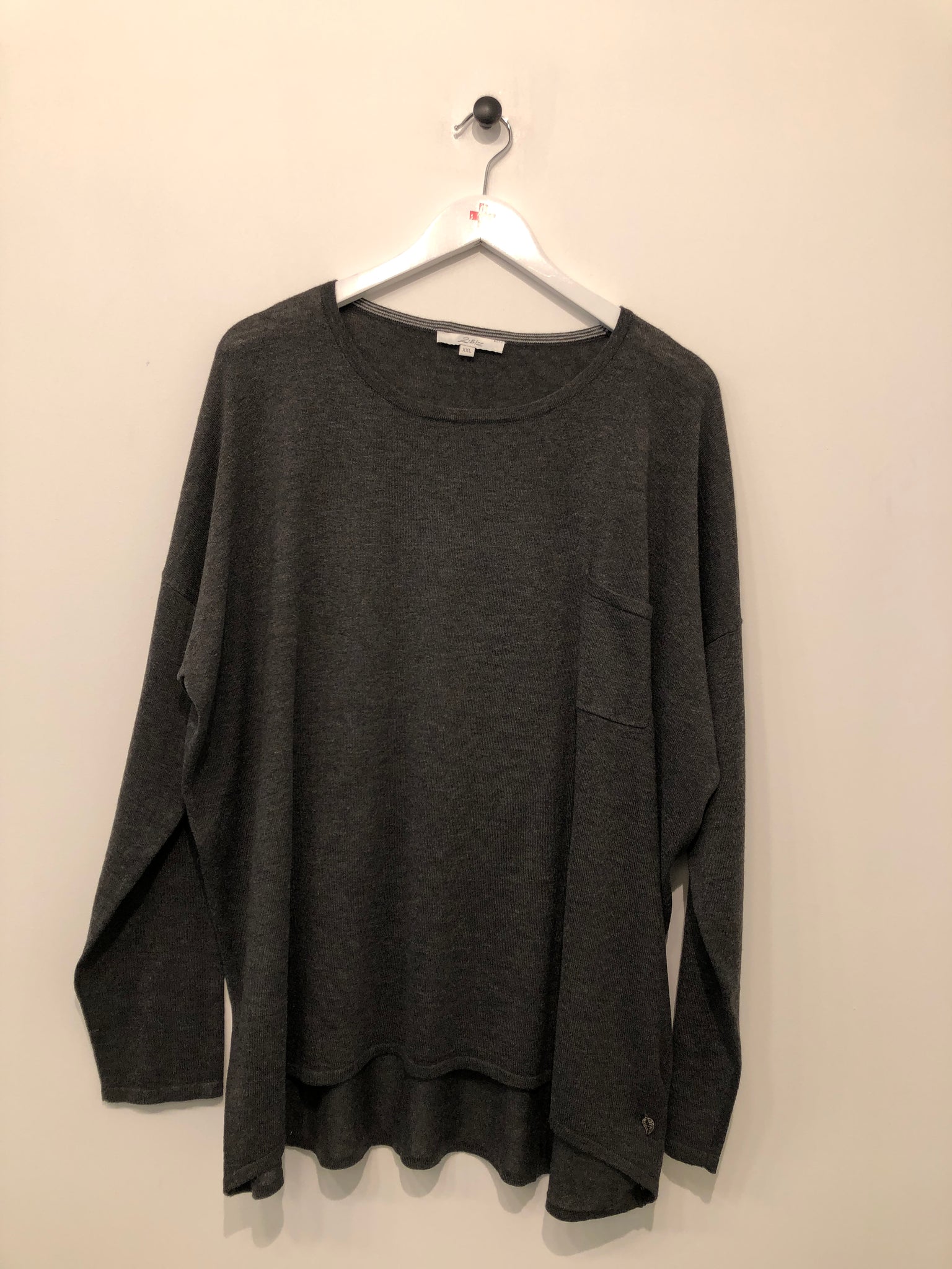 Flot lang 2-Biz strik med rund halsudskæring og fin lille lomme ved brystet.