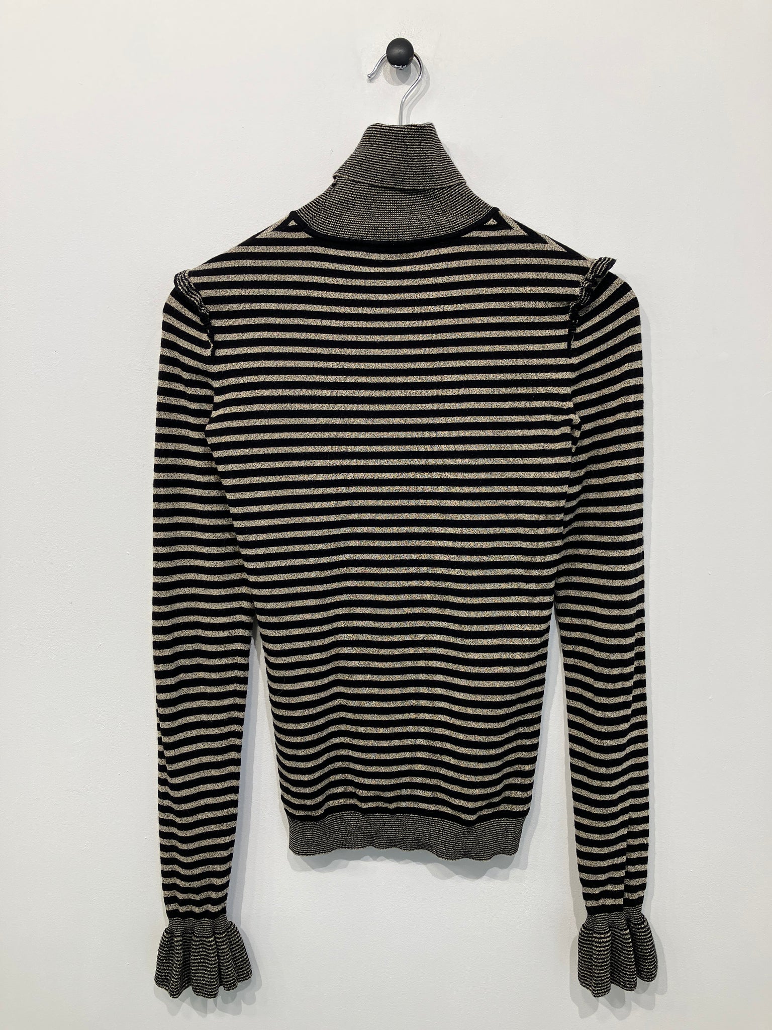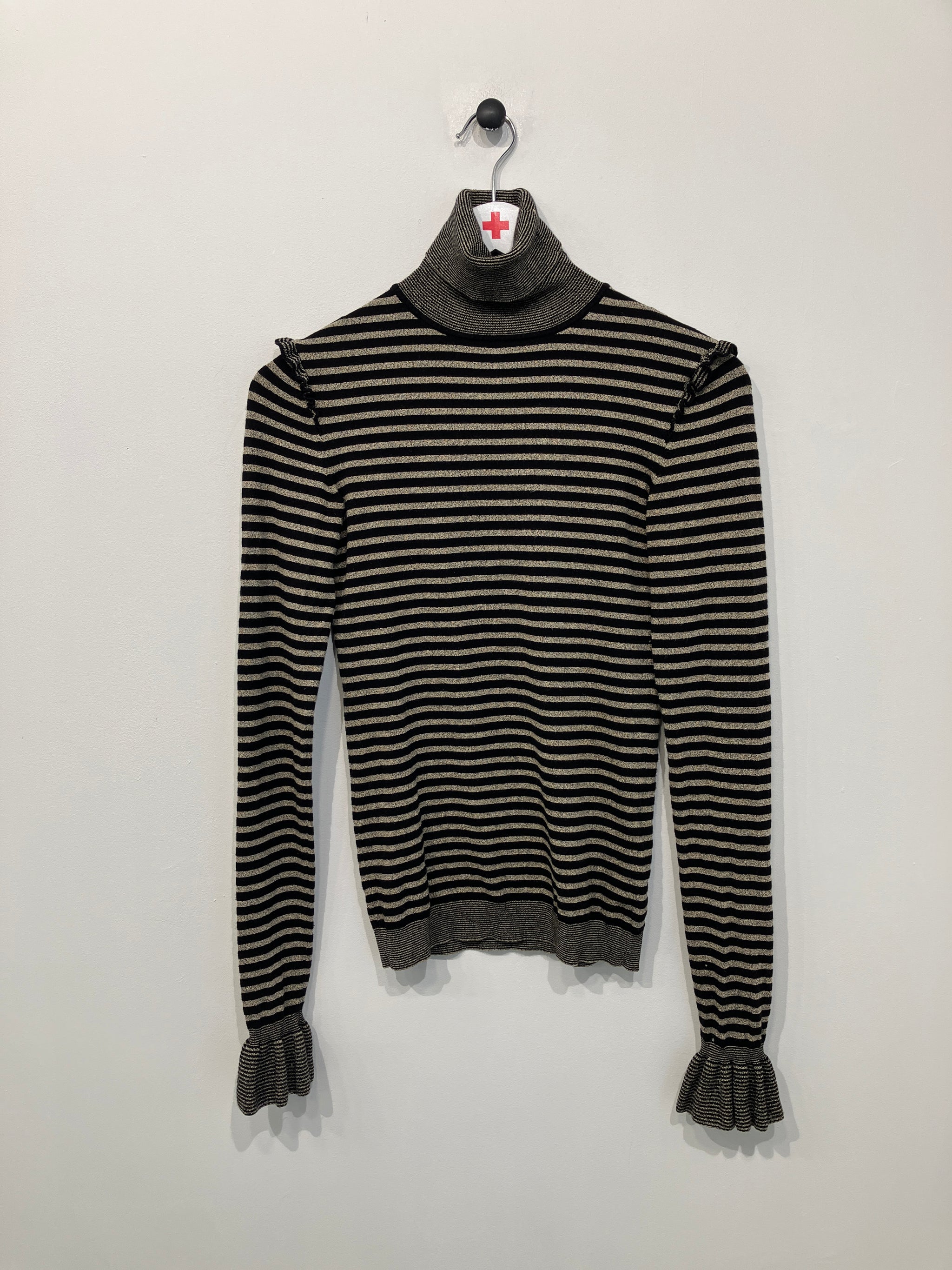 Super lækker rulle krave bluse med en fin kant ved hænderne.