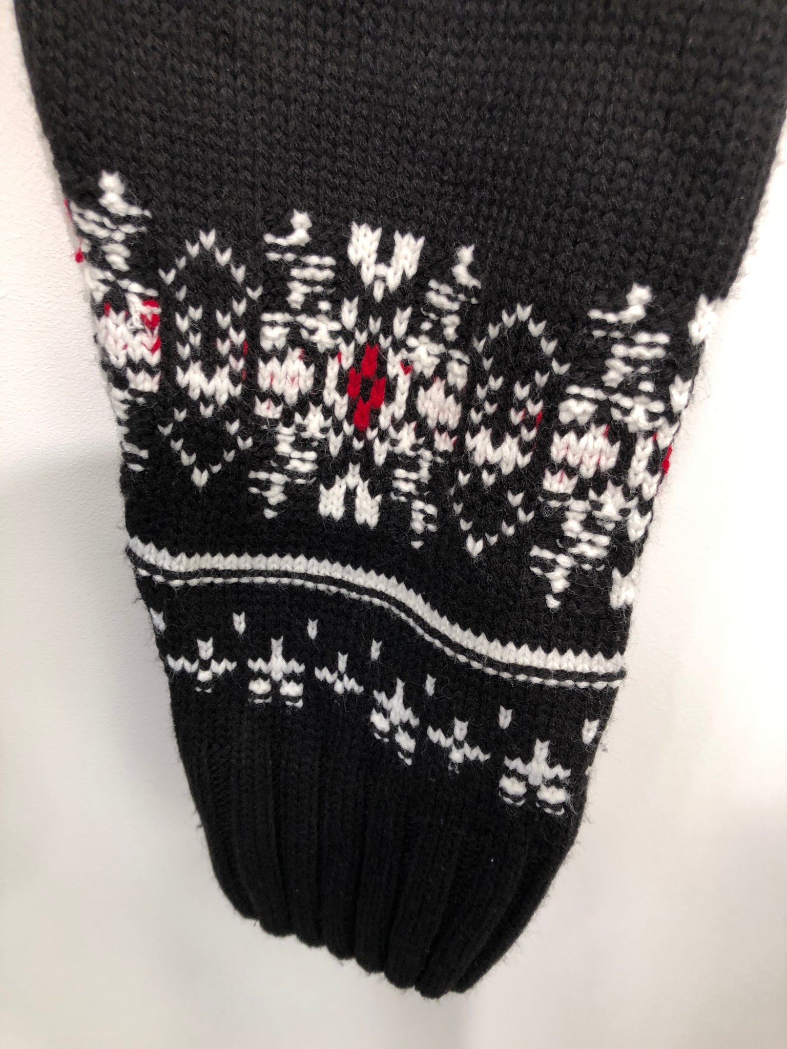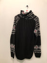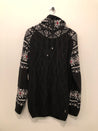 Flot lang Carisma strik med høj hals og pænt flerfarvet mønster.
