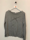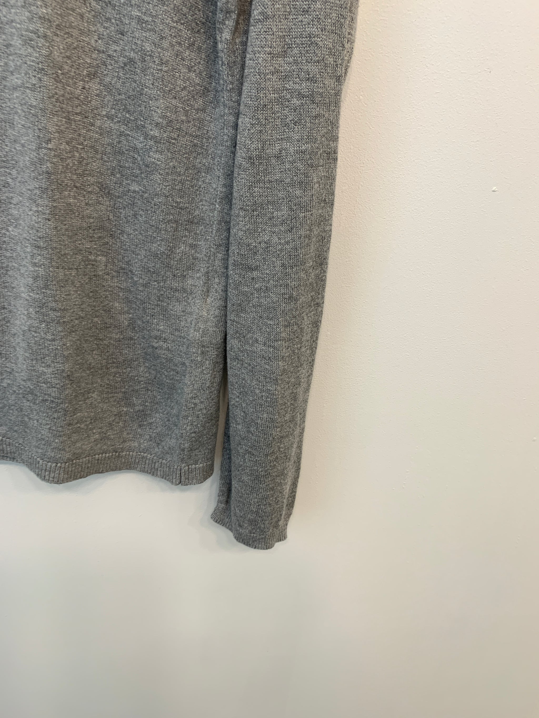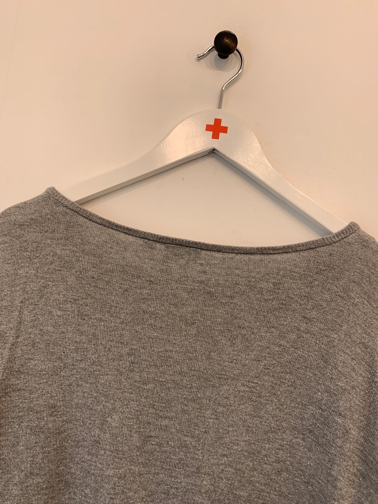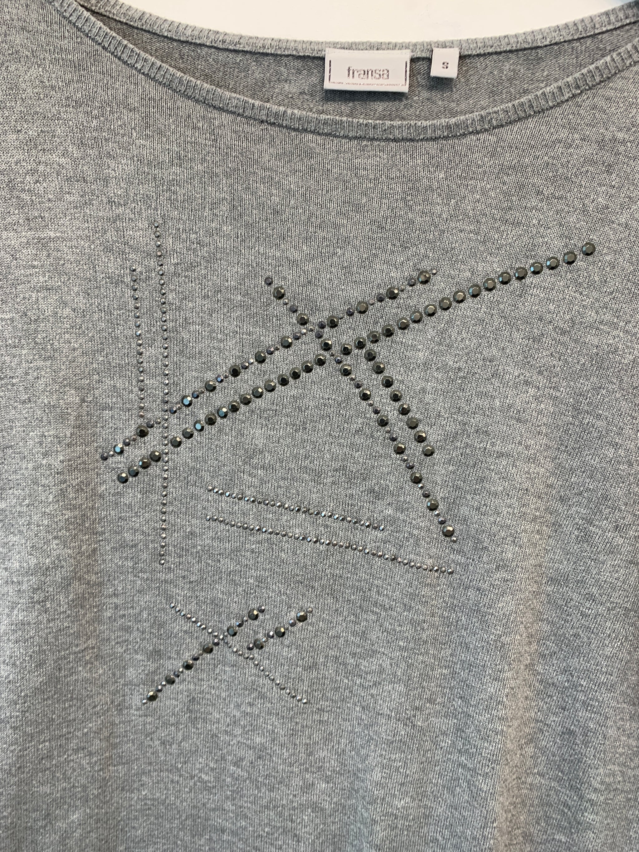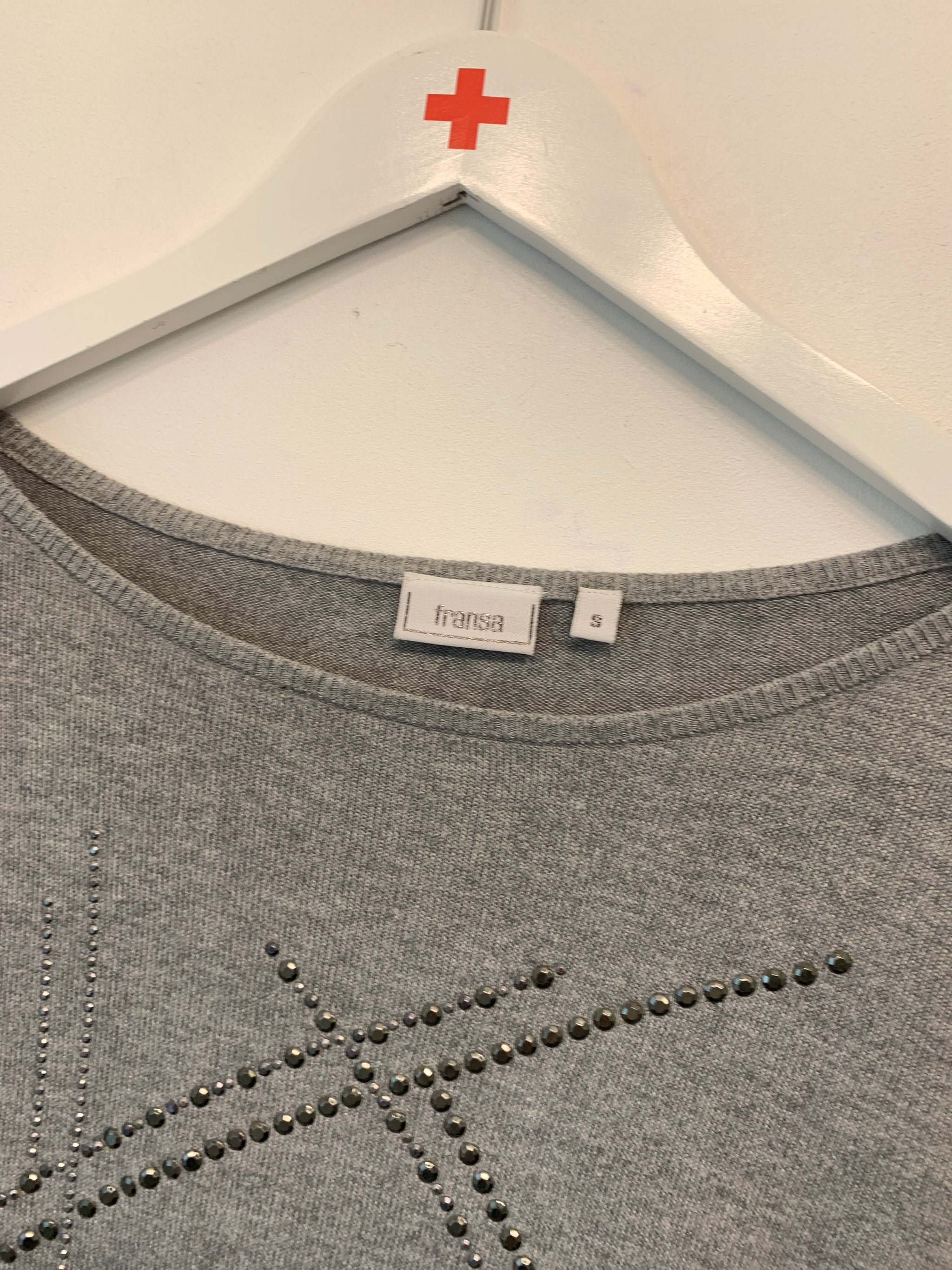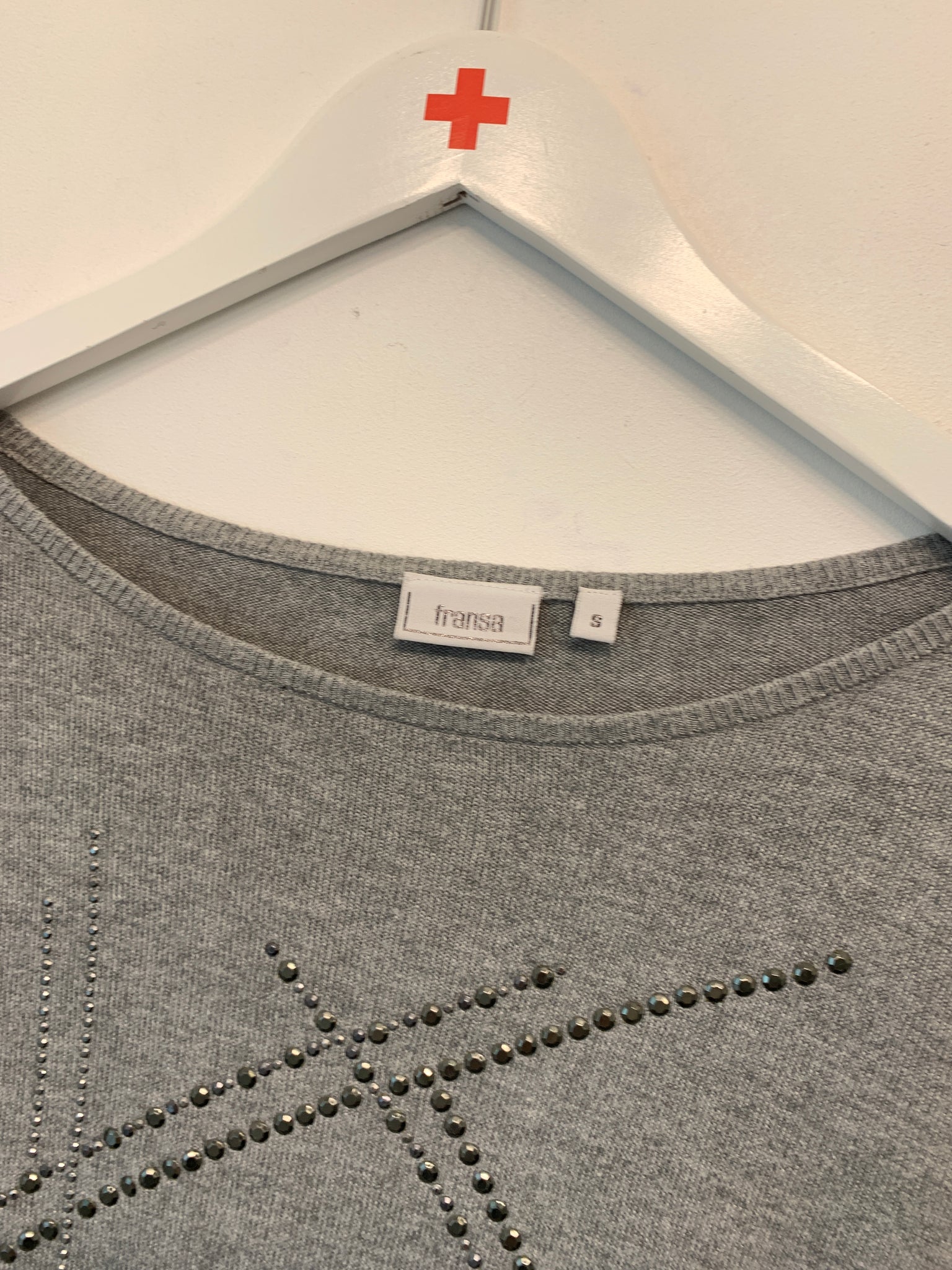 Flot lang ærmet strik bluse med pynt foran & med ensfarvet ryg.