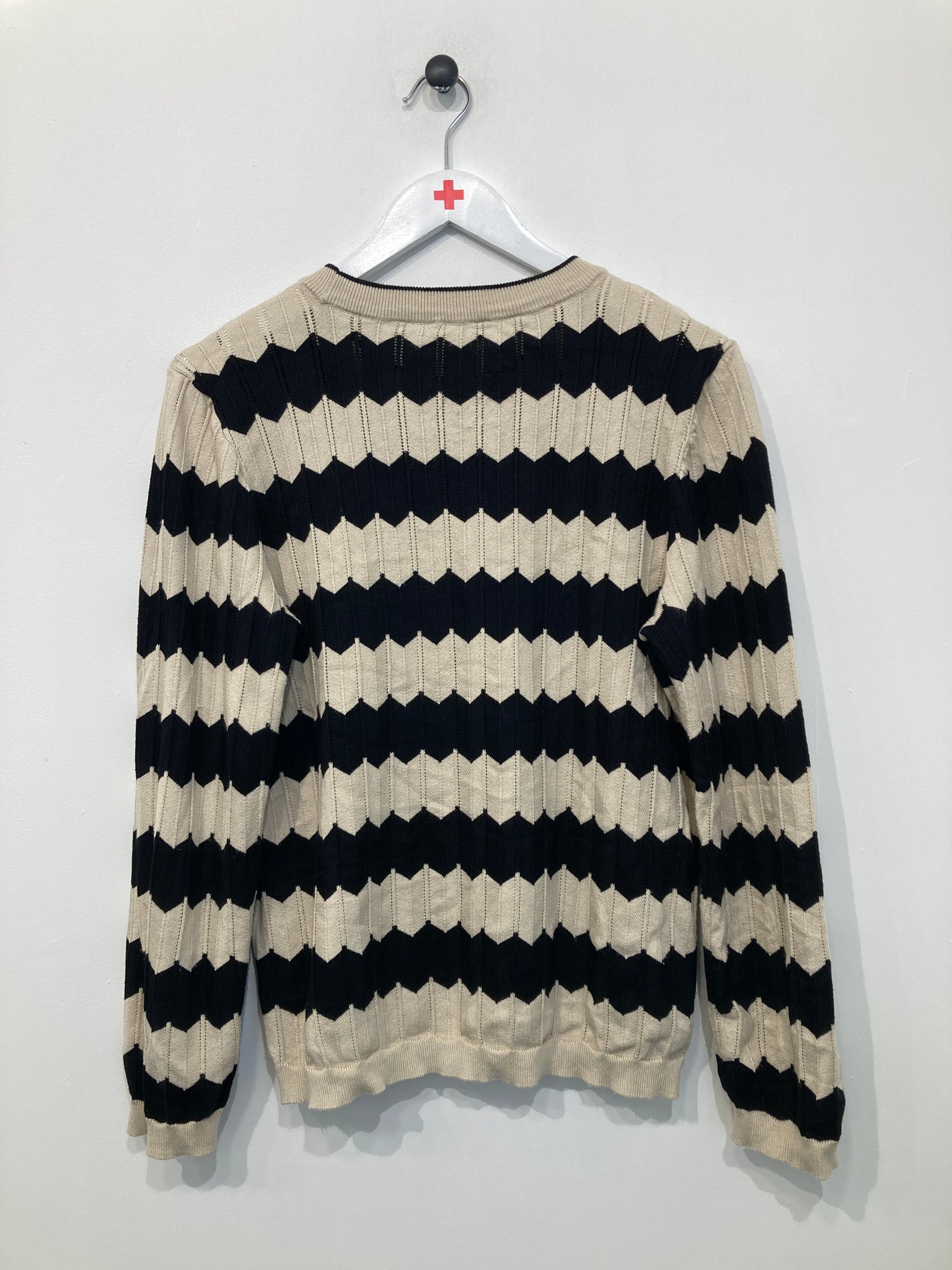 Da vi sælger brugt tøj, der er blevet vasket, kan vi ikke garantere, at størrelsesangivelsen ligger inden for en standardskala.